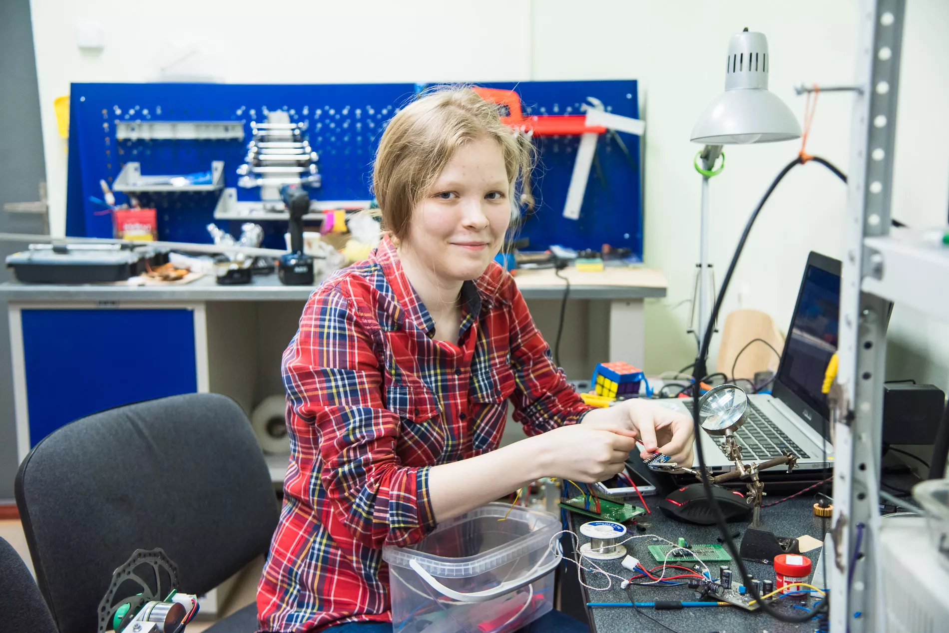 Надо просто прийти. Занятия проходят три раза в неделю: во вторник и четверг с 18:00 до 20:00, а по субботам — с 15:00 до 17:00. Мы поговорим с человеком, и если ему действительно интересно, то возьмем его в команду. К сожалению, это не бесплатно — мы берем 2,5 тыс. рублей в месяц. Нашу работу со школьниками никто не финансирует, а электроники в процессе горит очень много. Это нормальный процесс. При этом у нас есть курсы по робототехнике, которые включают в себя программирование, системотехнику, теорию управления и курсы по 3D‑моделированию и печати, благодаря которым дети учатся рисовать детали, проектировать и производить их. Людям интересно «видеть» все своими руками, они начинают понимать, зачем им нужен этот набор знаний, который в них вкладывают учителя.
