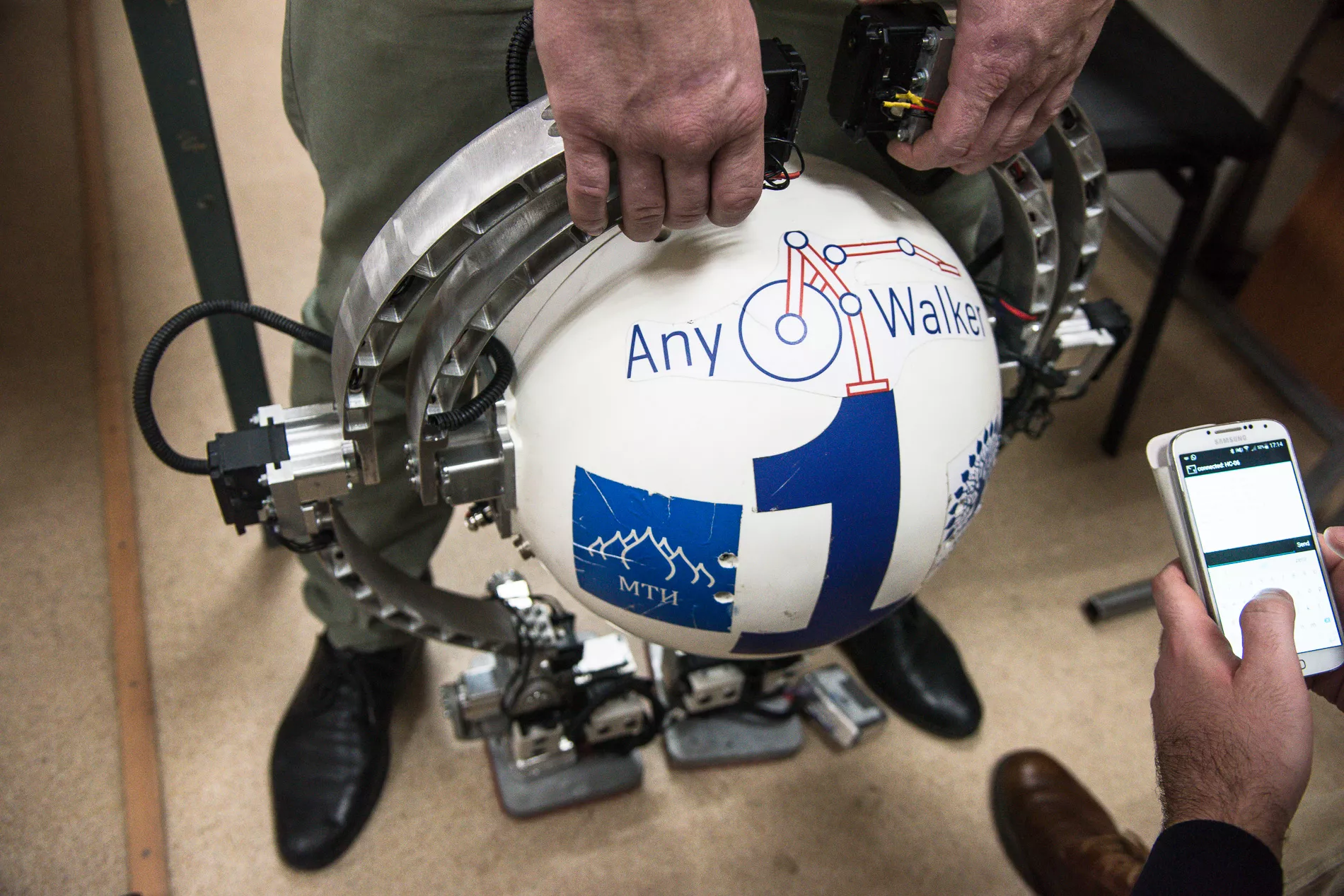 Наш основной проект — это шагающее шасси для персональных и сервисных роботов с системой стабилизации, так называемый AnyWalker. Первую версию мы собрали в декабре 2015 года, так что нам сейчас уже почти год. AnyWalker — совместный проект Кубанского государственного университета и Московского технологического института, который выступил в качестве венчурного инвестора. Проект стал победителем трека Robotics федерального акселератора Generation Startup 2015. Робота, тогда еще в виде прототипа, мы успешно представляли в Токио, в Сингапуре, на выставке автоматики в Мюнхене, в Париже на выставке Innorobo. Кроме того, человеку сейчас очень нужны помощники, которые могут взять на себя выполнение большого объема работы, начиная от похода по магазинам и помощи по дому и заканчивая сложными техническими и производственными процессами. И здесь наше изобретение тоже готово себя реализовать.