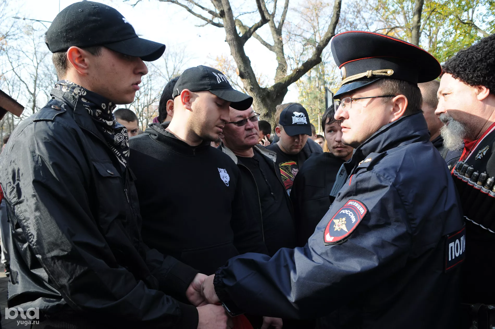 В некоторых случаях наши сотрудники встречаются с гражданами, чтобы провести разъяснение. Например, 4 ноября краснодарцы хотели провести так называемый «Русский марш». Они подали уведомление, проводили перекличку в соцсетях тех, кто хочет прийти. В уведомлении были все данные граждан. Мы их вызвали, разъяснили ответственность за проведение мероприятия с нарушением 54-ФЗ. И дальше они сами провели работу в соцсетях — рассказывали участникам об ответственности. В итоге семь человек встали возле барельефа «Казаки пишут письмо турецкому султану», сфотографировались без символов и прошли дальше. Это все равно что мы сейчас с вами выйдем на улицу, сфотографируемся возле памятника влюбленным собакам на углу Красной и Мира и объявим это акцией в защиту животных.