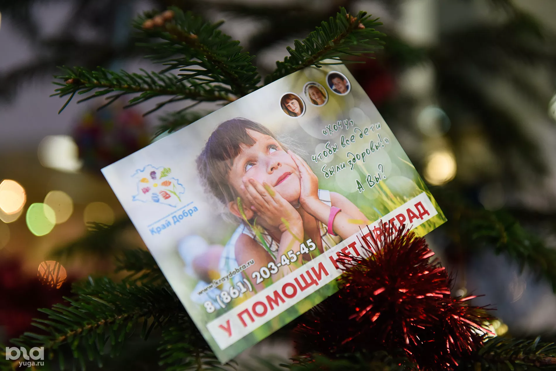— Наш фонд проводит новогоднюю акцию «Елки желаний». Маленькие пациенты со всего края, которые в Новый год будут находиться на лечении далеко от дома, написали свои новогодние мечты на открытках — «снегирьках». Нужно снять открытку с «Елки желаний», узнать новогоднюю мечту ребенка и передать подарок для него волонтерам «Края Добра», которые дежурят там же, рядом с елками. Во время акции, с 17 по 25 декабря, «Елки желаний» установят во всех крупных торговых центрах Краснодарского края. Больше всего их будет в краевой столице — десять. Каждый житель Кубани может сделать новогодний подарок нуждающимся детям.