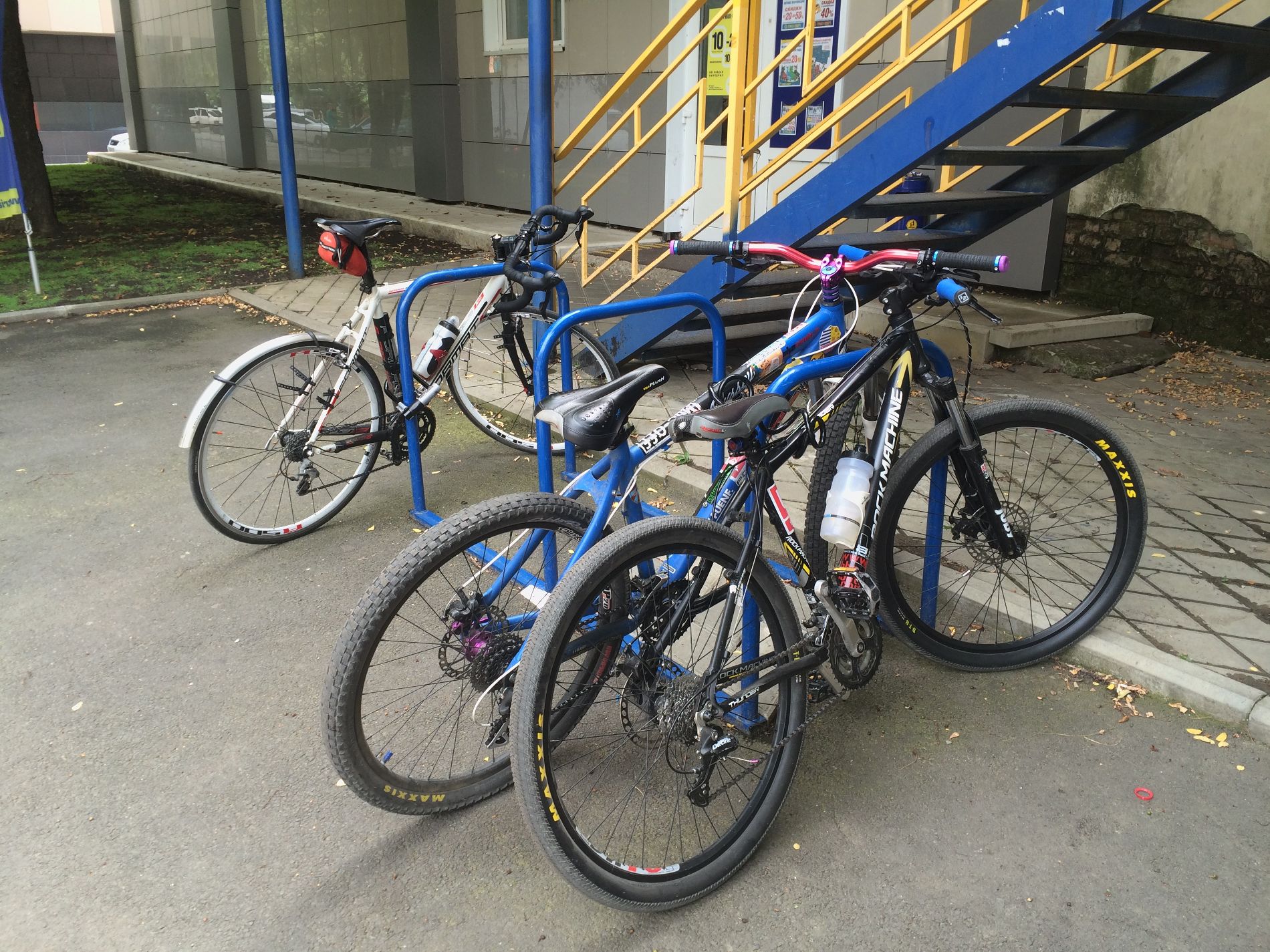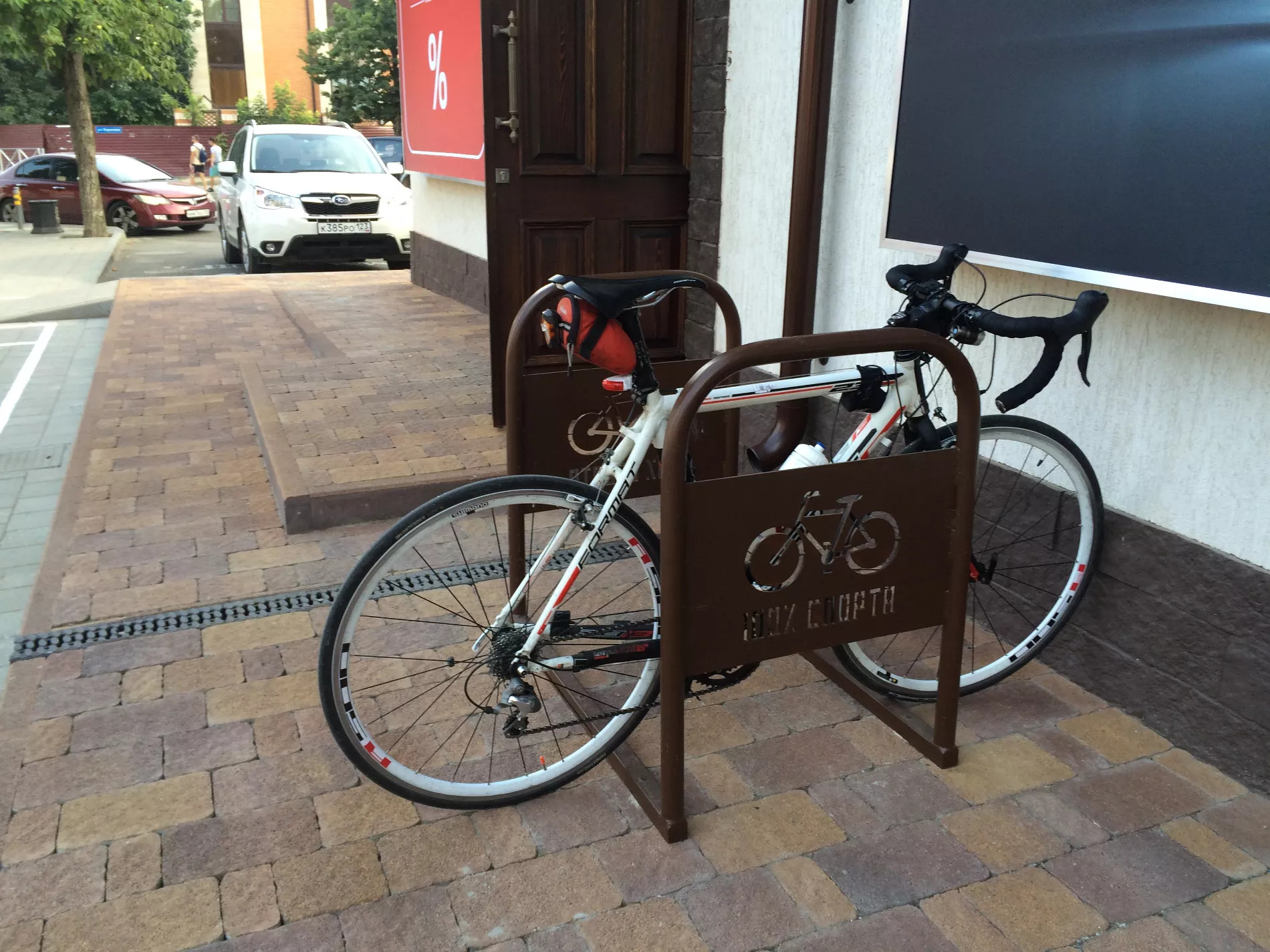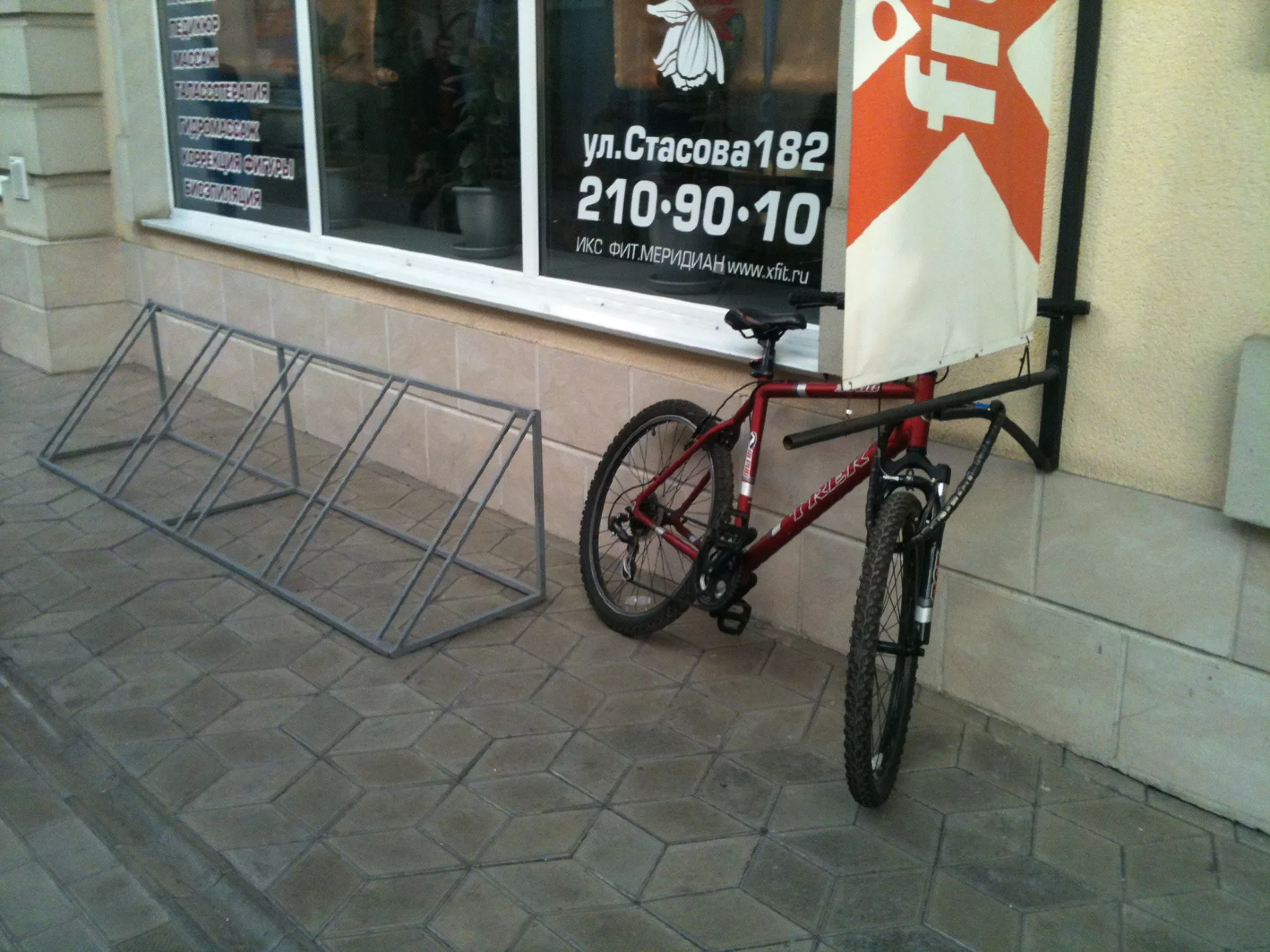 Особенно этим грешат предприятия, дошедшие до нас из Советского Союза, где велосипеды были одинаково дорожные, использовались только как транспорт и не требовали охраны. Если вы видите угловую парковку под переднее колесо, — скорее всего, она пришла (или ее принес человек) из прошлого. Задача такой парковки только одна — удерживать велосипед в вертикальном положении.