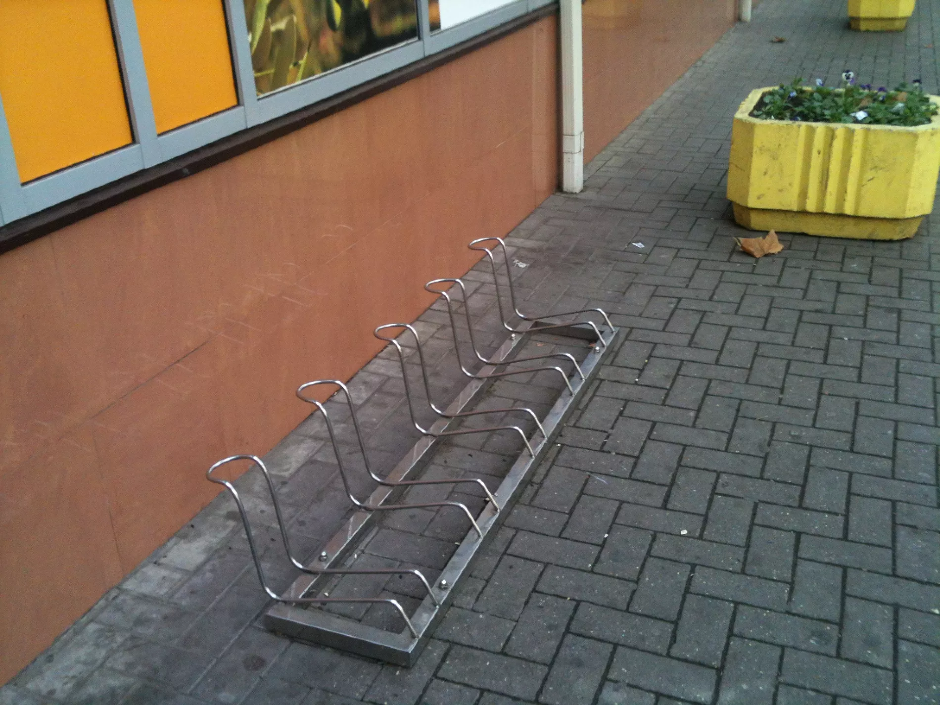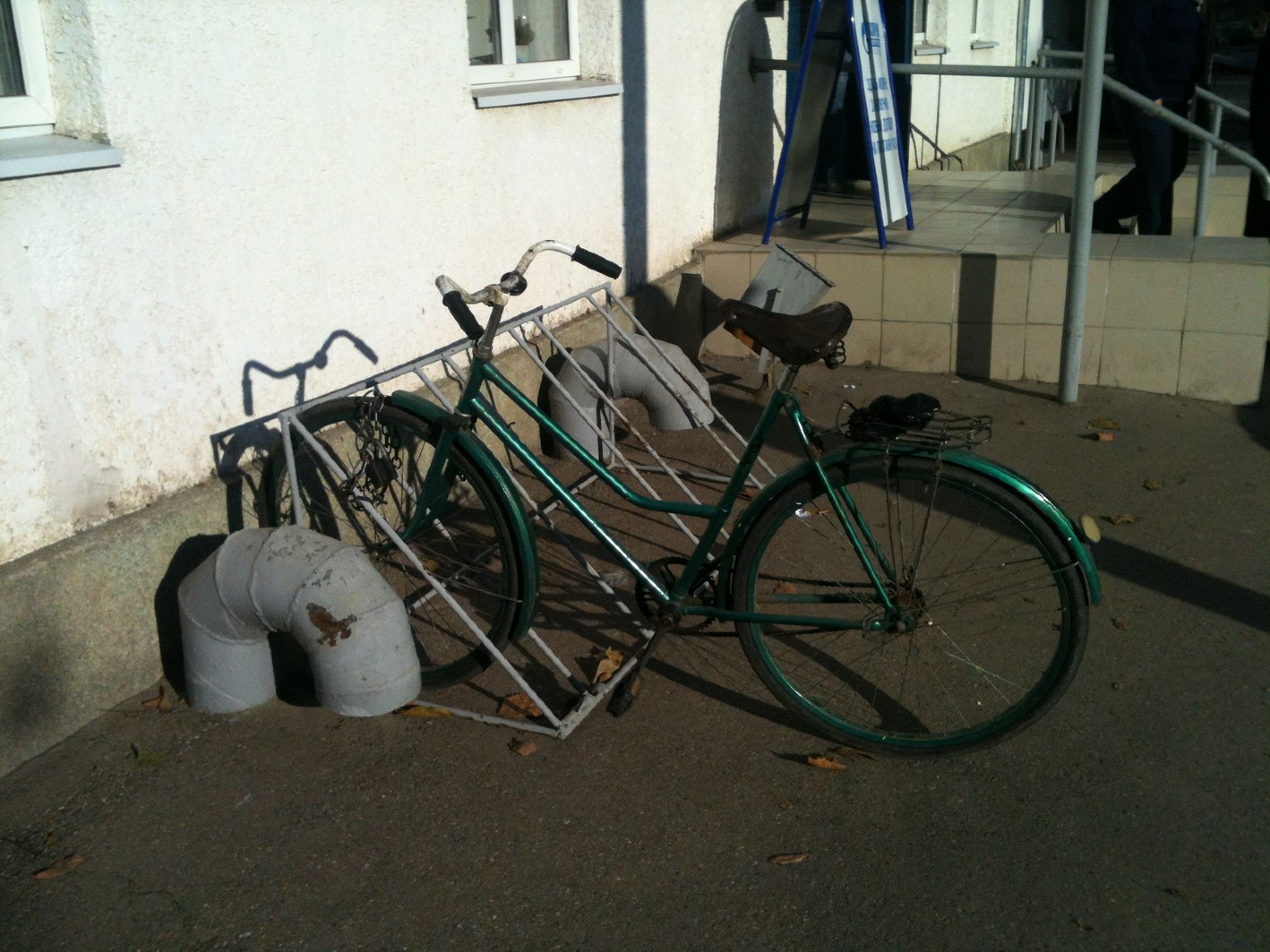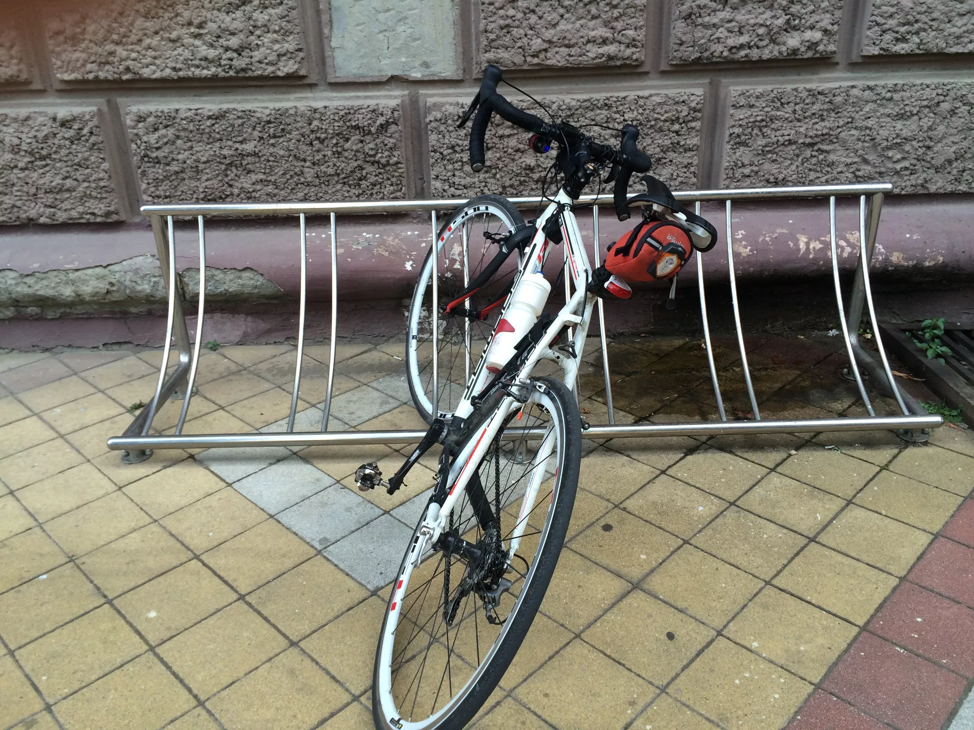 Особенно этим грешат предприятия, дошедшие до нас из Советского Союза, где велосипеды были одинаково дорожные, использовались только как транспорт и не требовали охраны. Если вы видите угловую парковку под переднее колесо, — скорее всего, она пришла (или ее принес человек) из прошлого. Задача такой парковки только одна — удерживать велосипед в вертикальном положении.