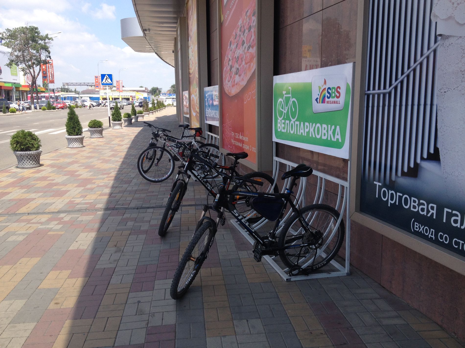 Если вы приехали в «Галерею» на велосипеде, лучше пристегните его с внутренней стороны — где Шуховская башня. Там есть две постоянно свободных парковки.