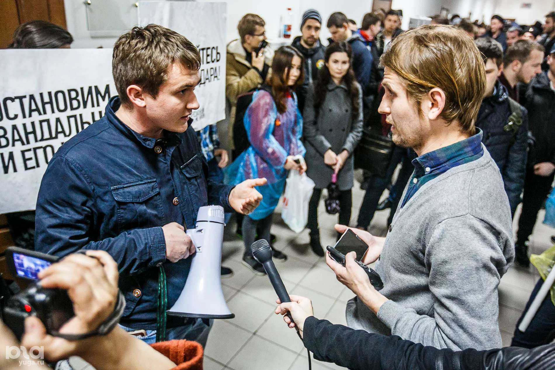 — Знаете, в тот момент, когда я начал оппонировать и вести дискуссию со сторонником Навального, я надеялся, что средства массовой информации подхватят и опубликуют ее. Но, к сожалению, оппозиционные СМИ по большей части публиковали либо ростовых кукол, либо интервью сторонника Навального с молодым человеком. Я не знаю, как и по каким причинам он туда попал. Он вел себя неуверенно, и он действительно не имел объема информации для того, чтобы выступать. А когда я вступил в дискуссию с этим же сторонником Навального, ее почему-то не опубликовали. А у нас произошел действительно серьезный разговор. Мой оппонент начал меня провоцировать на скандал, на драку, размахивал руками, активно жестикулировал, пытался похлопать по плечу. На эти действия я не реагировал и продолжал гнуть свою линию. И на вопрос, зачем мы туда пришли, я ответил, что мы пришли высказать протест против того, что у нас открывается штаб. Потому что это происходит непонятно зачем — и непонятно под какими лозунгами молодежь выводит на улицы.