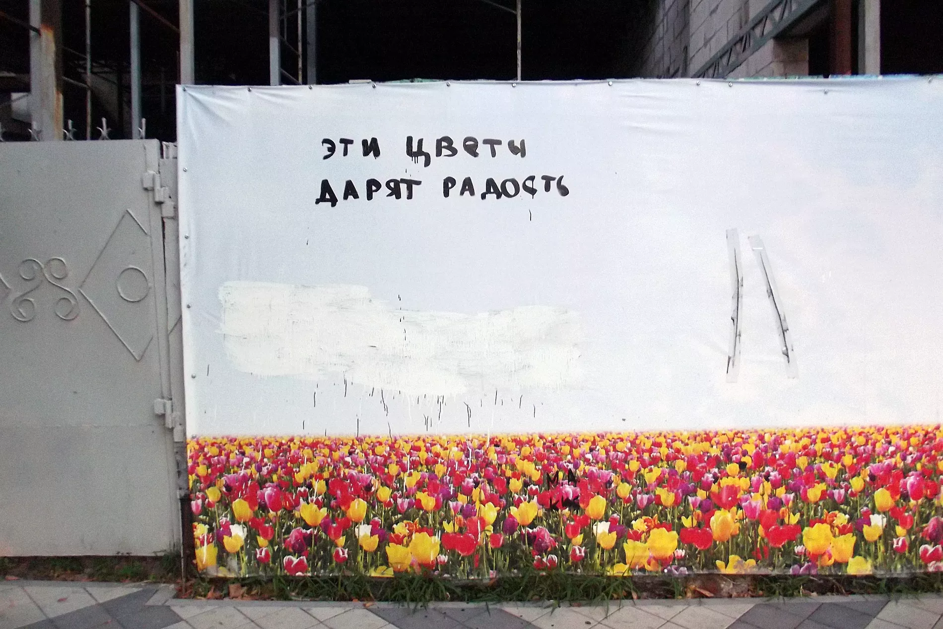 Однако еще задолго до инициативы Первышова местные художники пытались обратить внимание краснодарцев на вездесущие «цветочные заборы». Так, летом 2015 года участник арт-группы «Кюс» Максим Алехин сделал проект «Симуляция благополучия», в рамках которого он разрисовывал цветочные баннеры на строительных заборах. О своих взглядах на уличное искусство и проблемах с правоохранительными органами художник рассказал порталу Юга.ру.