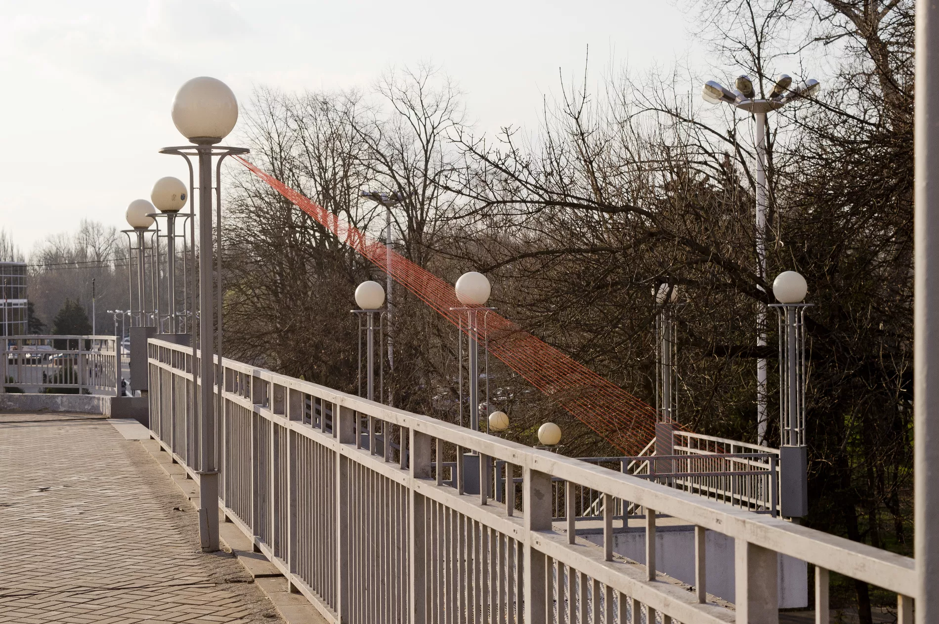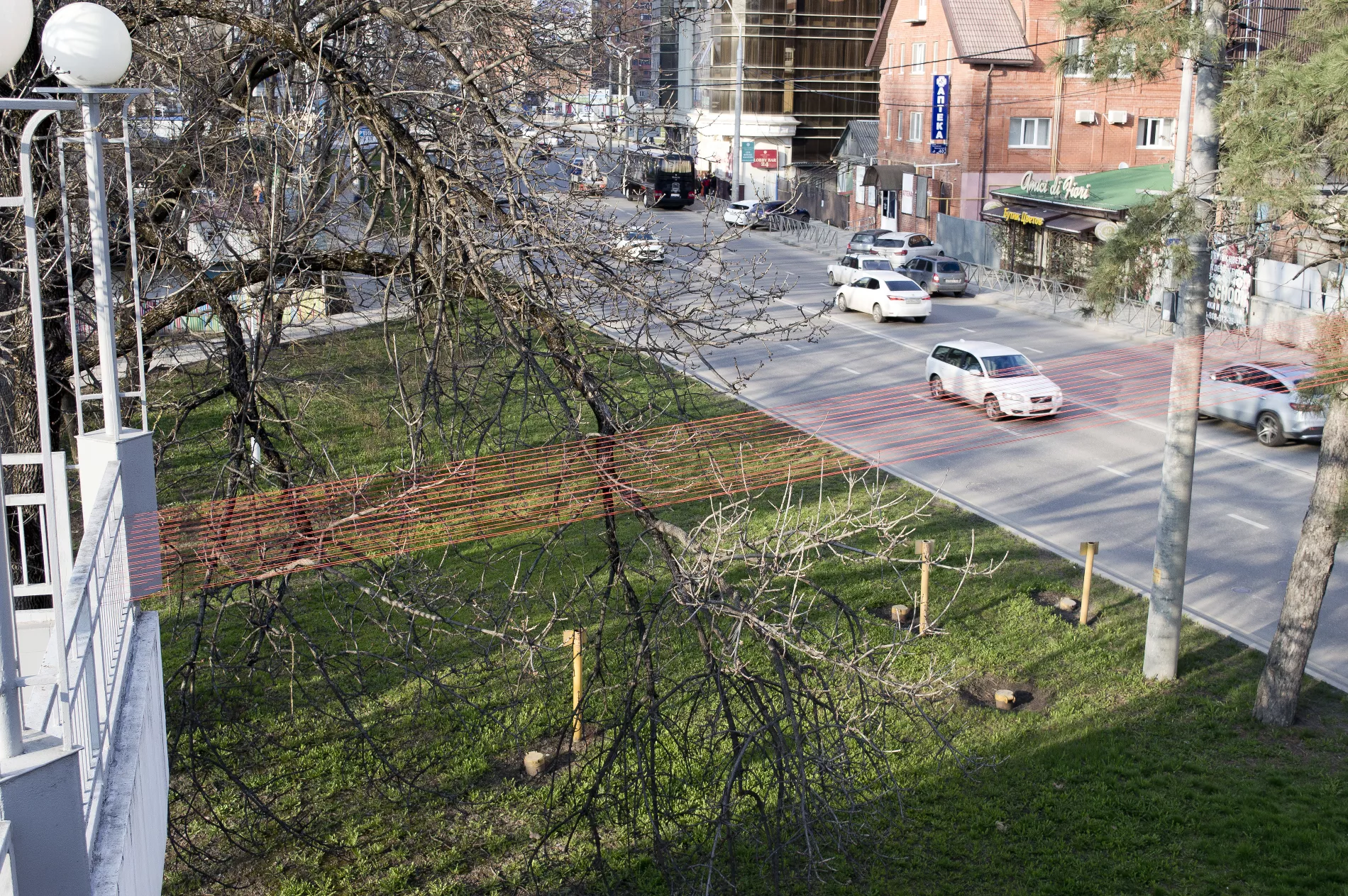 Сейчас мы делаем проект с нитями: за разные предметы на улице цепляем длинную нить и составляем из этого ряд линий. Сначала мы с помощью каких-нибудь «Яндекс.Карт» штудируем город, вспоминаем и представляем, где и как это можно сделать. Затем набрасываем макет. Потом мы идем в магазин «Леонардо» в «Галерее», покупаем несколько клубков нитей подлиннее и идем делать так называемое искусство. Вообще, интересно, как люди реагируют, — можно все что угодно услышать. Кто-то делает вид, что ничего особенного не происходит, кто-то просто спрашивает, че это мы тут делаем, кто-то с небольшой ноткой агрессии говорит что-нибудь в духе «вам что, делать больше нечего?». А один раз у нас и вовсе спросили, мол, не террористы ли мы.