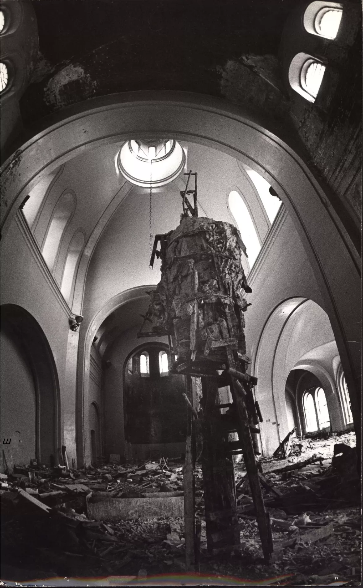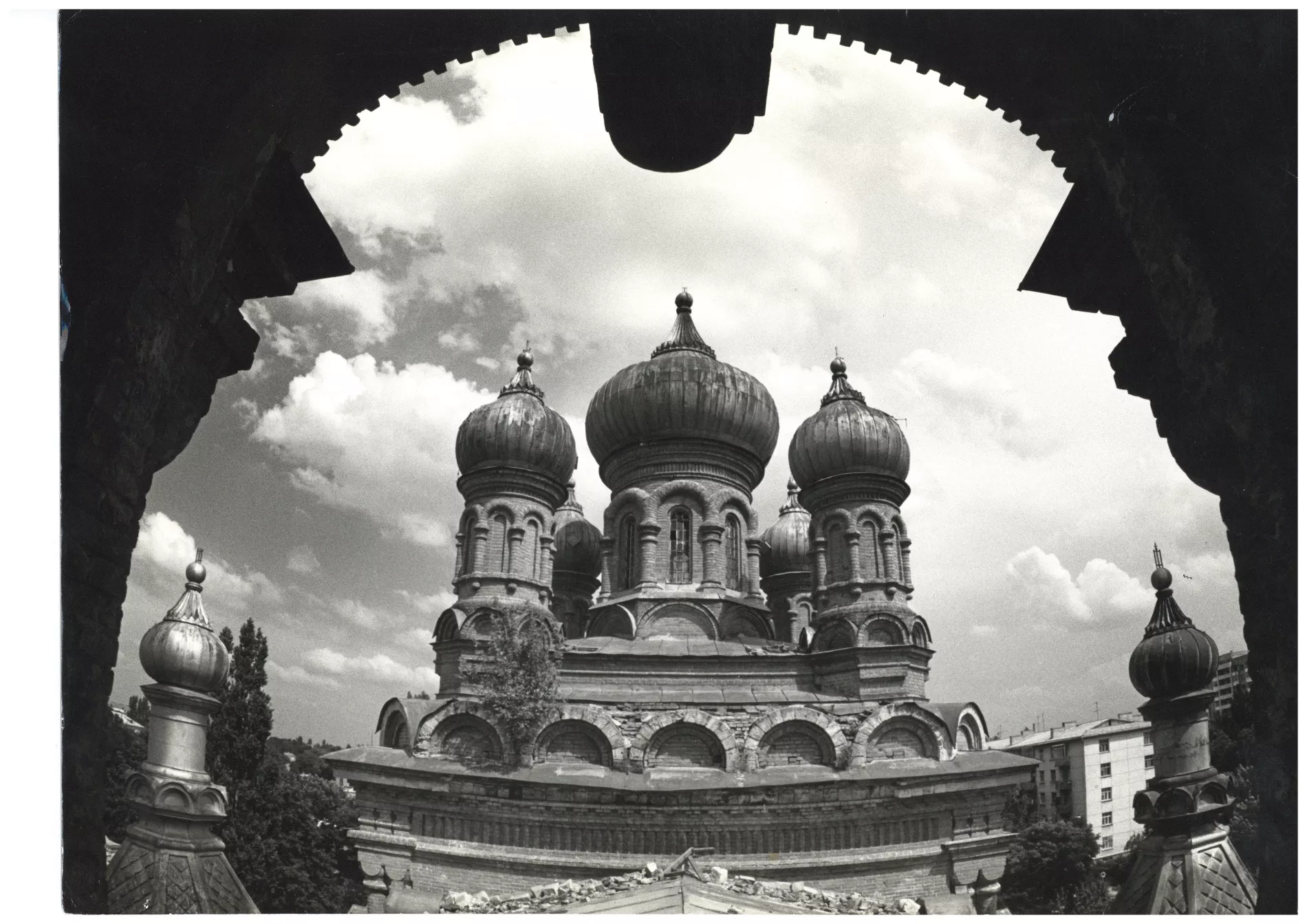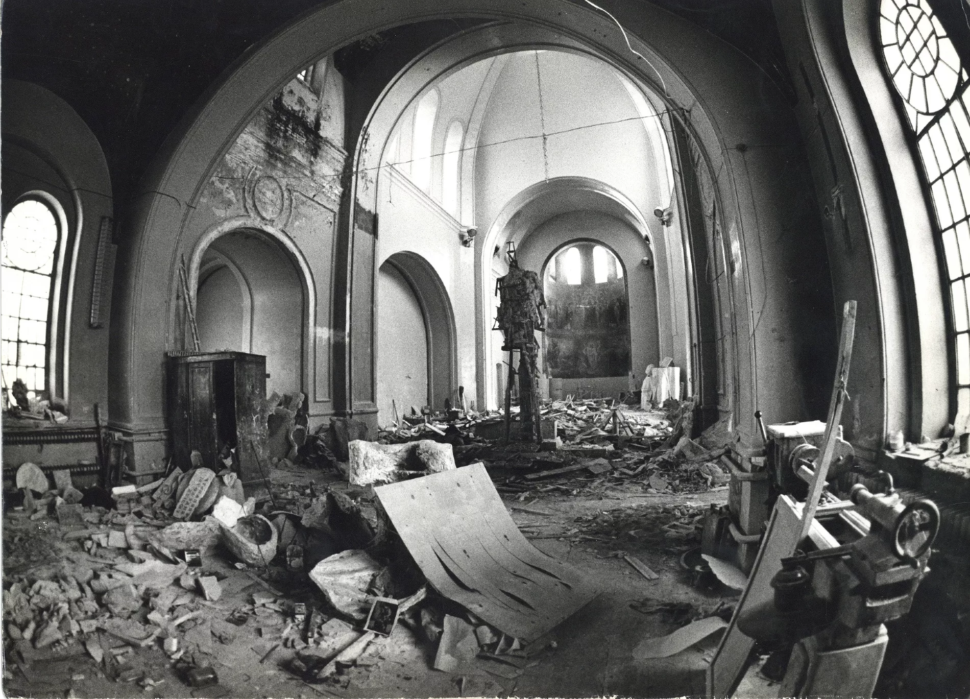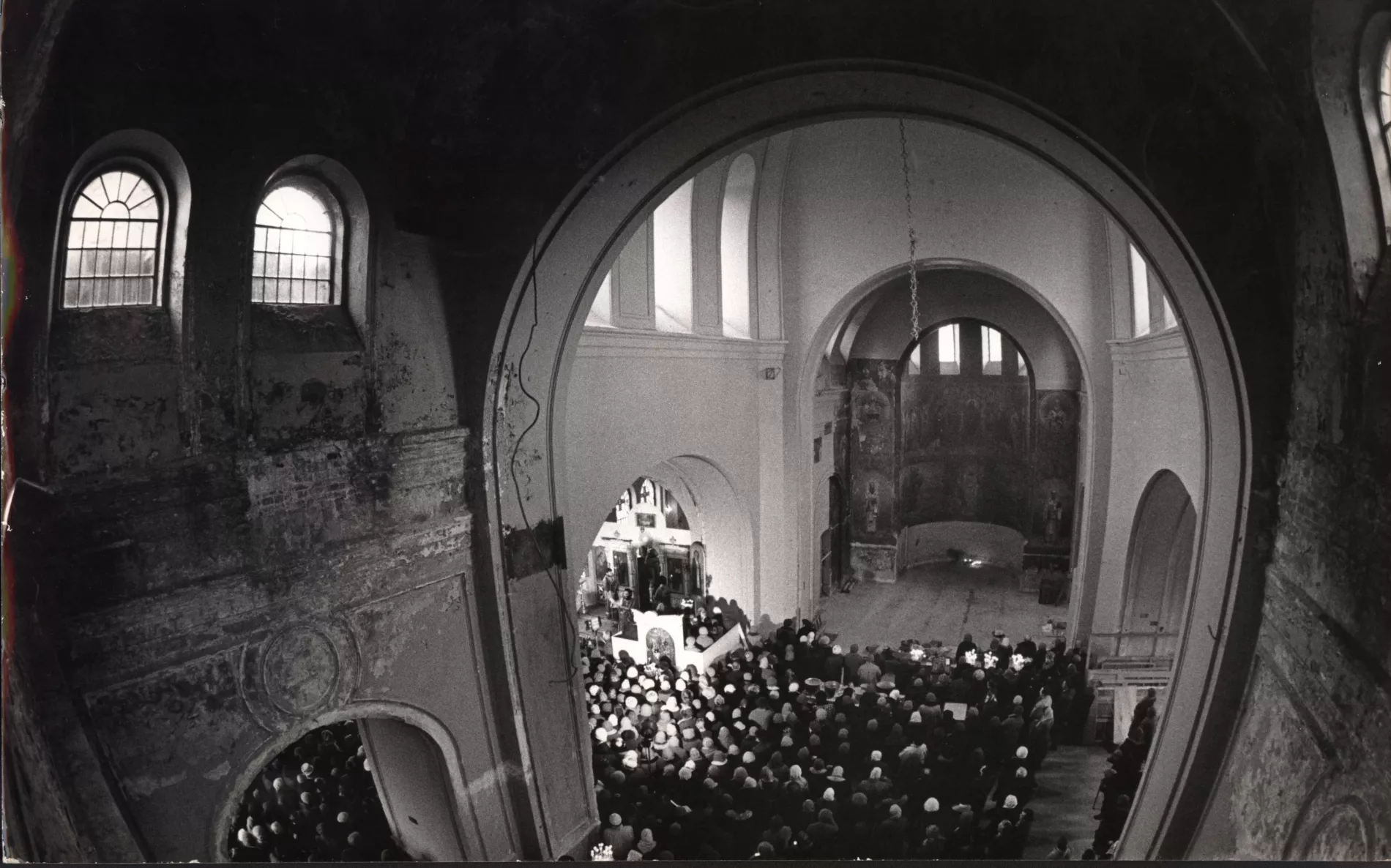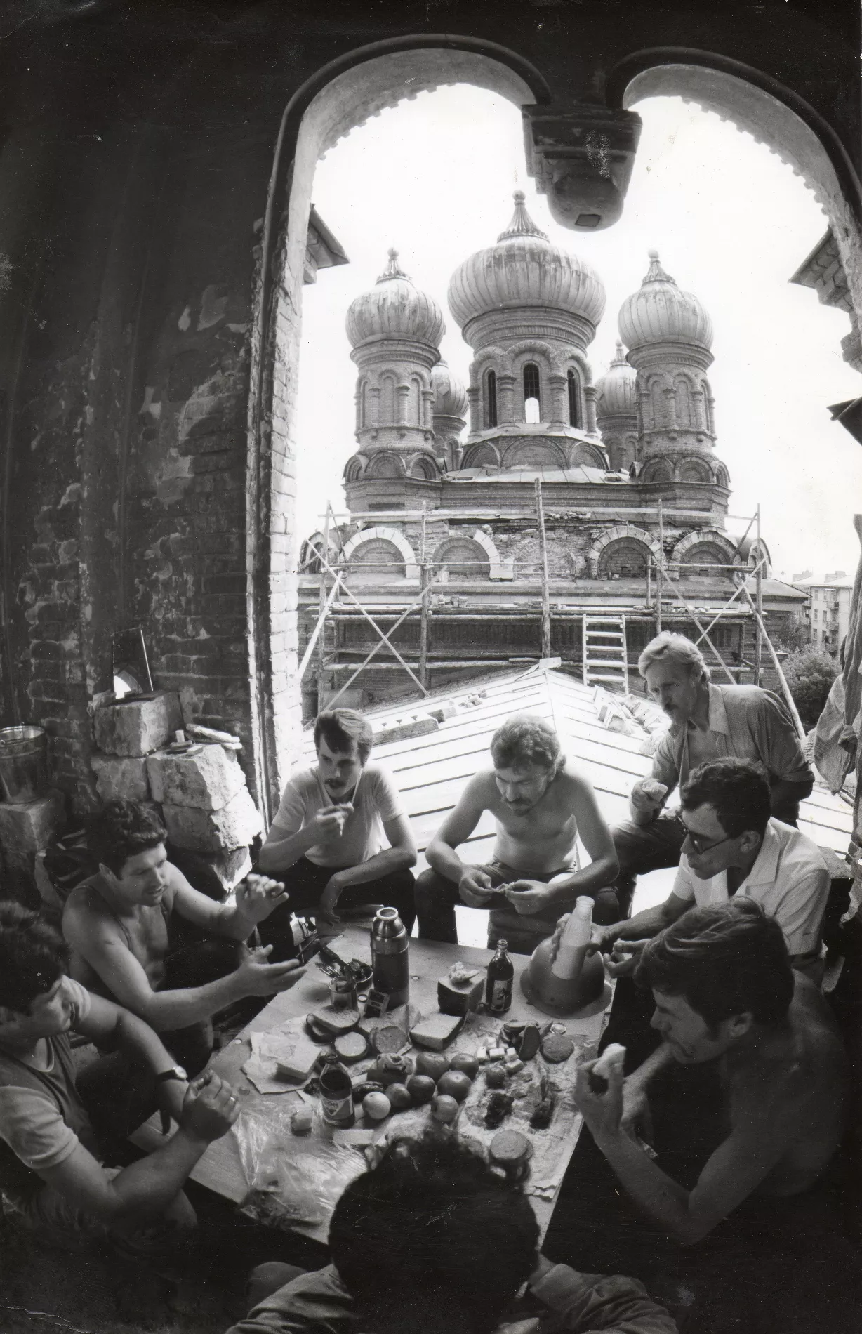«В левом крыле было хранилище с картинами, в алтарной части было помещение, в котором скульптор Коломойцев работал над памятником «Фантомаса». Когда худкомбинат выехал, весь этот мусор остался внутри здания. В конце 80-х годов, когда мы начали восстанавливать храм, было вывезено 500 КамАЗов мусора. Мне не верили относительно количества, но бумаги у меня до сих пор сохранились».