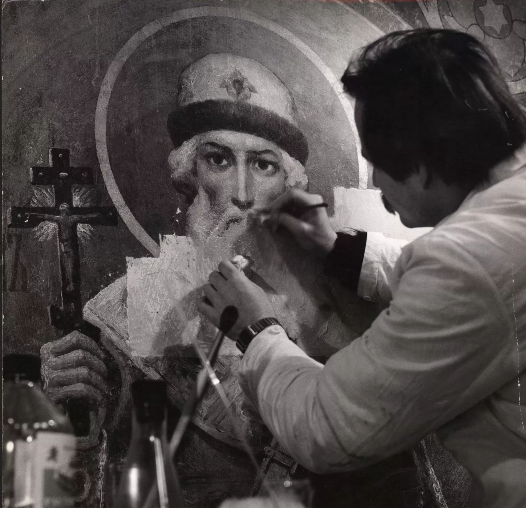 Многие росписи в храме, по словам Валерия Кулеша, сохранились только благодаря смекалке советских художников: «Неправы те, кто говорят, что вот коммуняки такие плохие — загадили и закрасили все стены в церкви. Когда худкомбинат передавал нам на баланс здание, главный инженер выдал мне несколько катушек с негативами и рассказал, что по его распоряжению стены покрыли слоем так называемой матоты, состоящей из воды, 10% масляной краски и мыла. Если это все хорошо перемешать, то получается такая вроде бы как краска. И они всю эту живопись взяли и закатали, а фактически ее законсервировали. И когда стены очистили, выяснилось, что стены, закатанные матотой, оказались в гораздо более сохранном виде, чем те, которые остались незакрашенными».