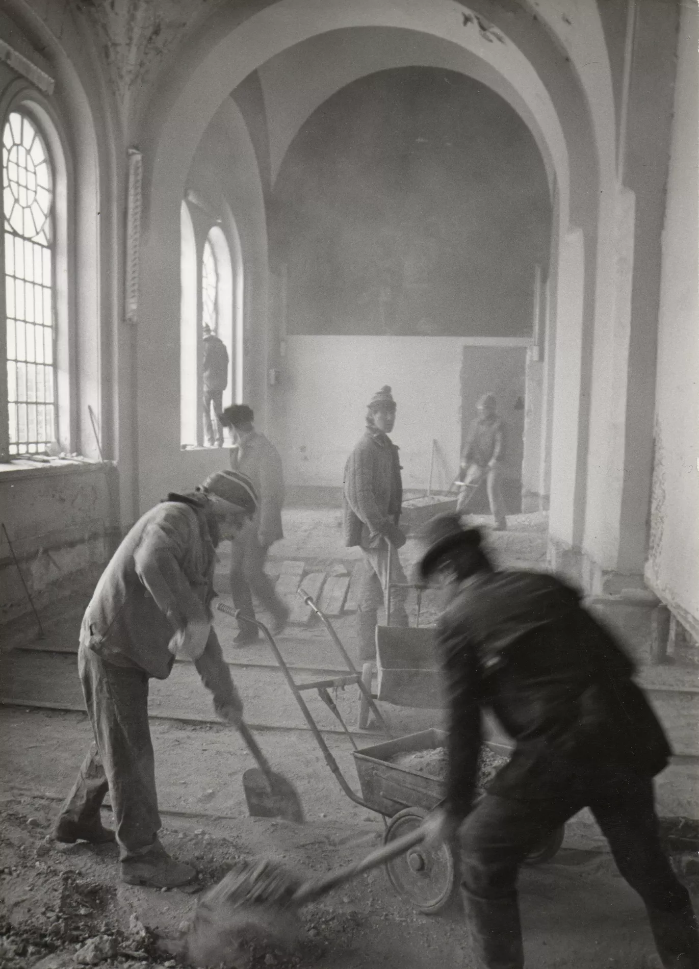 Когда понадобилось помещение для сооружения 20-метрового монумента «Созидателю», позже установленному на улице Мачуги, на склад пустили группу архитекторов, которые прижились на новом месте, и с начала 1970-х скульптурный цех художественного комбината краевого отделения Художественного фонда РСФСР окончательно вытеснил Горплодоовощторг из здания храма.