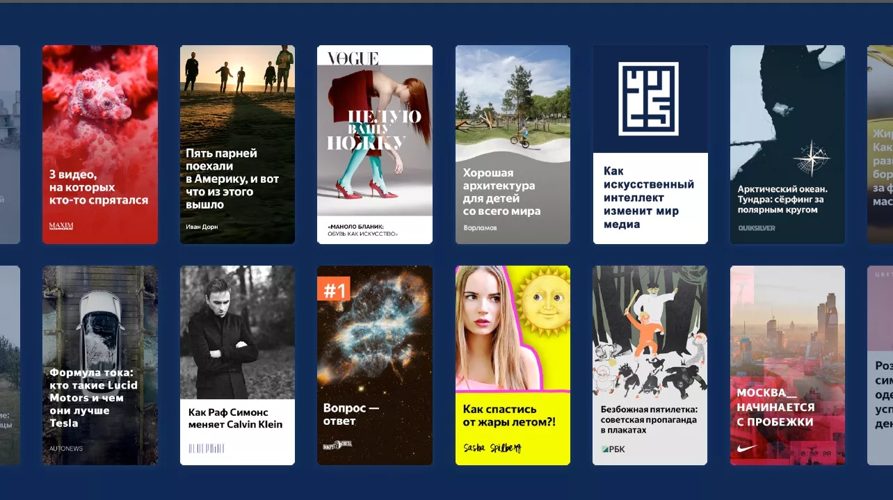 — «Дзен» анализирует историю браузера, то, чем интересуется человек, также анализирует его поведение внутри «Дзена»: как он кликает на карточки, остановился ли он на ней или пролистал дальше, как надолго остановился, перешел ли по ней, нажал на кнопку «больше такого» или «меньше такого». Все это анализируется с помощью технологий искусственного интеллекта.