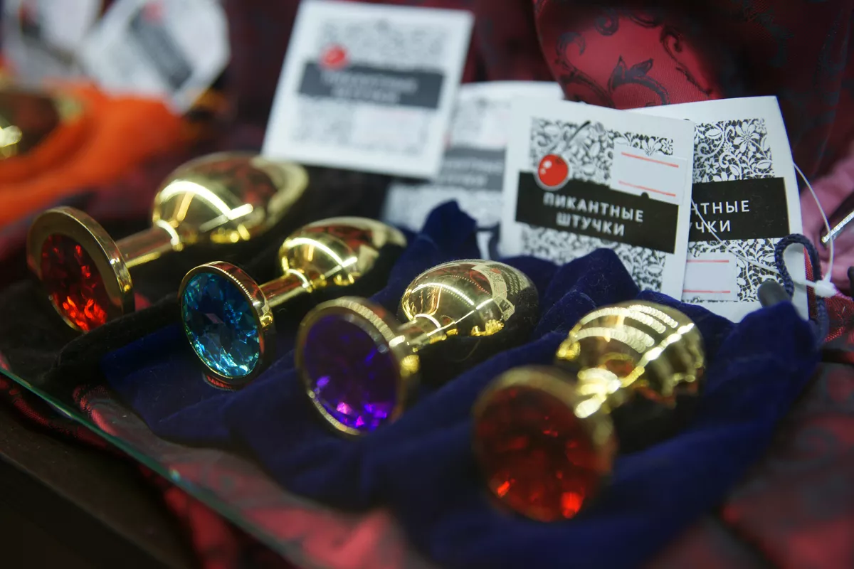 Многие думают, что большая часть витрин в таких местах занята вибраторами, резиновыми куклами с открытыми ртами и красными кружевными пеньюарами. Это не вполне правда, но действительно: целый отдел посвящен образцам искусственных мужских половых органов всех видов и подвидов — фаллоимитаторам, фаллопротезам, страпонам и, собственно, вибраторам. Отличаются они не только по размеру, цвету и наличию мошонки. Главное, говорит продавец Алена, — это материал. В основном сейчас используется киберкожа, которая максимально приближена к человеческой. Кстати, ее делают и в Краснодарском крае, есть у нас такой завод. Его продукция востребованна и, по мнению Алены, имеет хорошее соотношение цены и качества. Самой Алене на вид около 25 лет, у нее короткая стрижка и фиолетовое мелирование, в таких разговорах она явно чувствует себя не менее комфортно, чем бармен в крафтовом баре — в дискуссии о сортах и вкусовых оттенках.