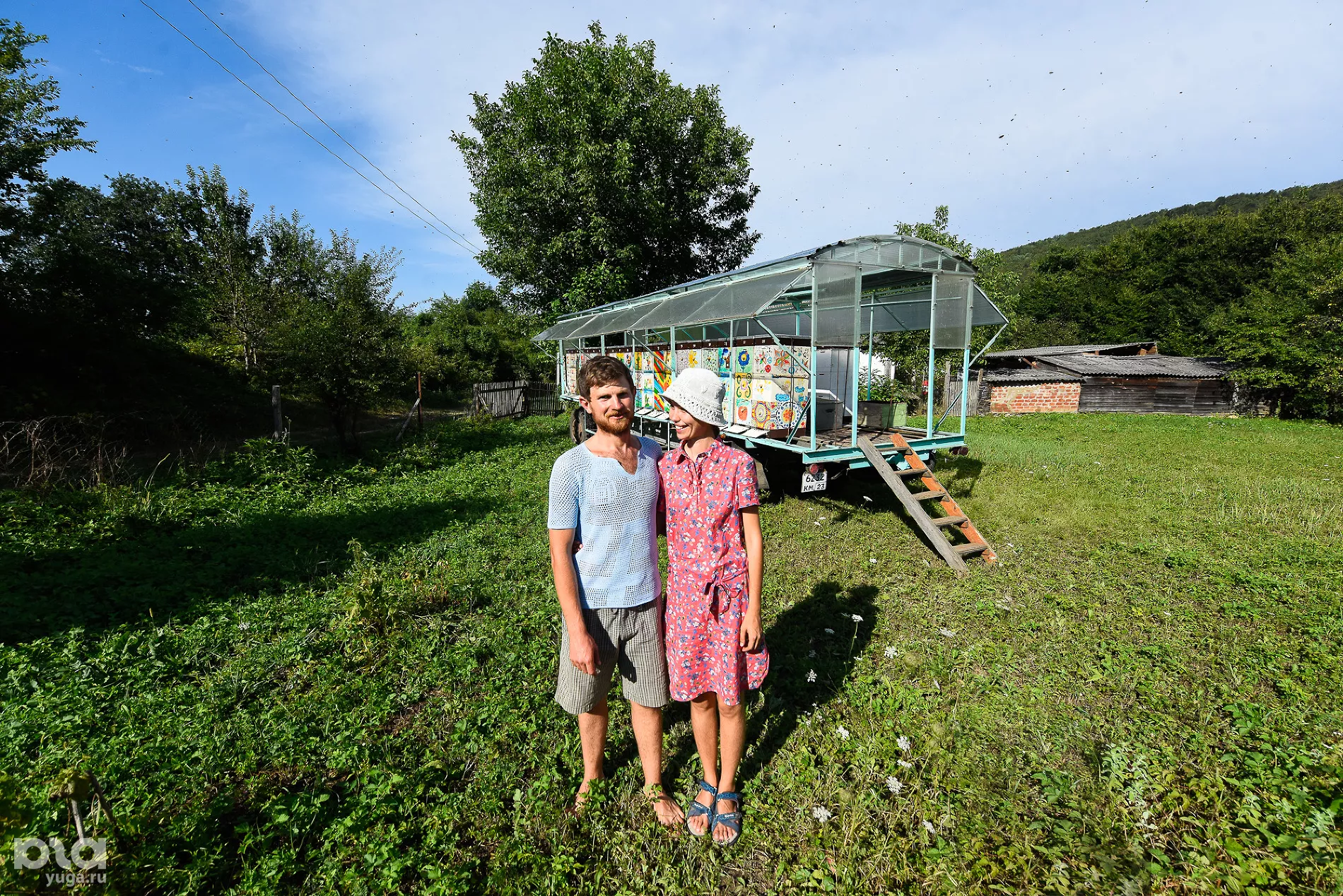 Мы подъезжаем к Новым Полянам в Апшеронском районе, съезжаем на улицу Кирова, петляющую через весь поселок, и видим Павла и Викторию, они встречают нас перед своим участком. Молодые пчеловоды угощают нас чистейшей водой из родника. Фруктовые деревья, чабрец, мята, туи и вид на бурную горную реку — свежесть бьет по всем органам чувств человека, который только что приехал из города.