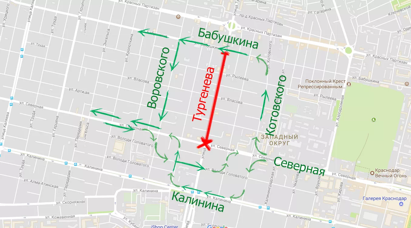 Как ездить в Краснодаре во время ремонта улицы Тургенева и Садового моста? Объясняем со схемами