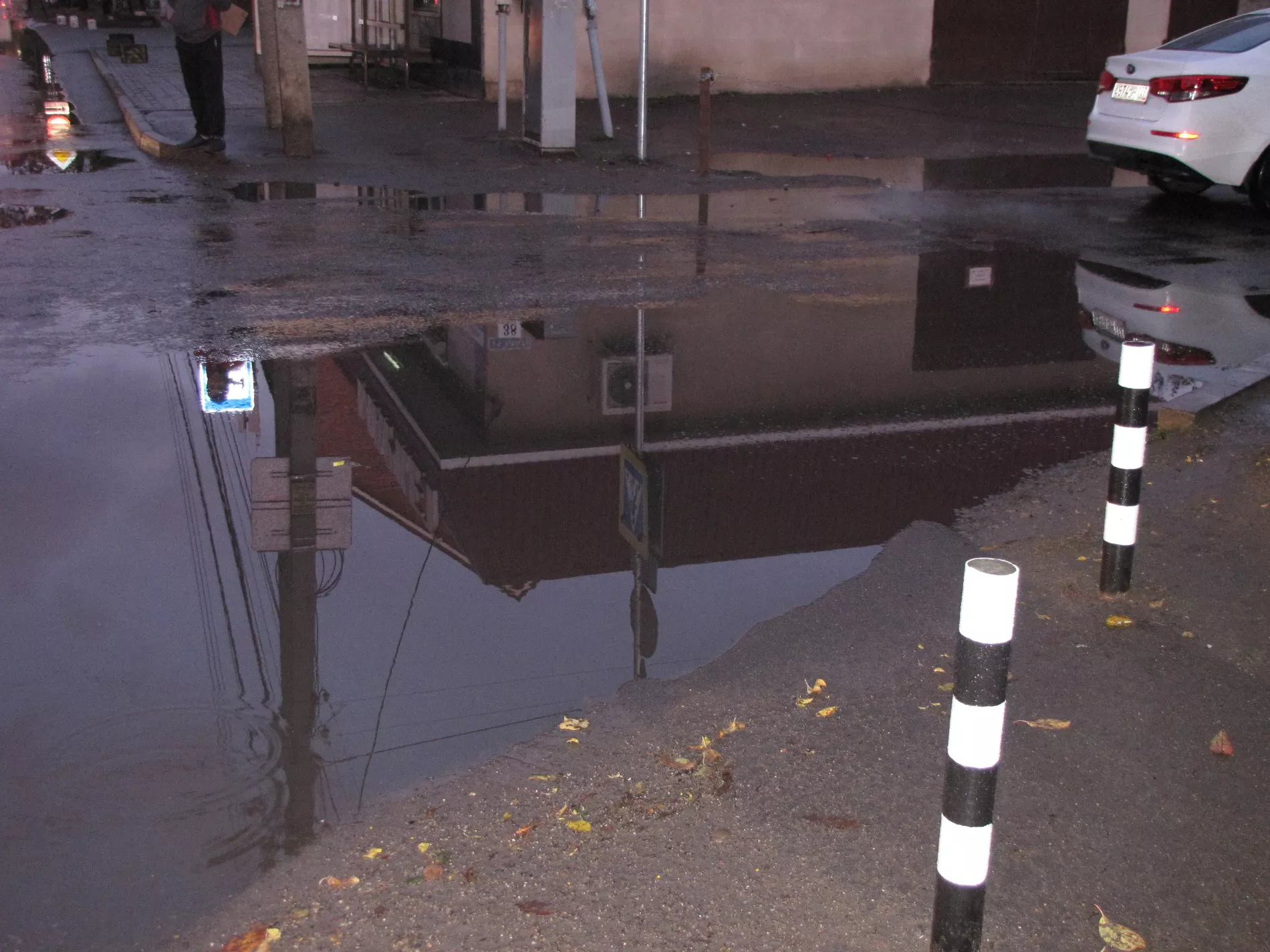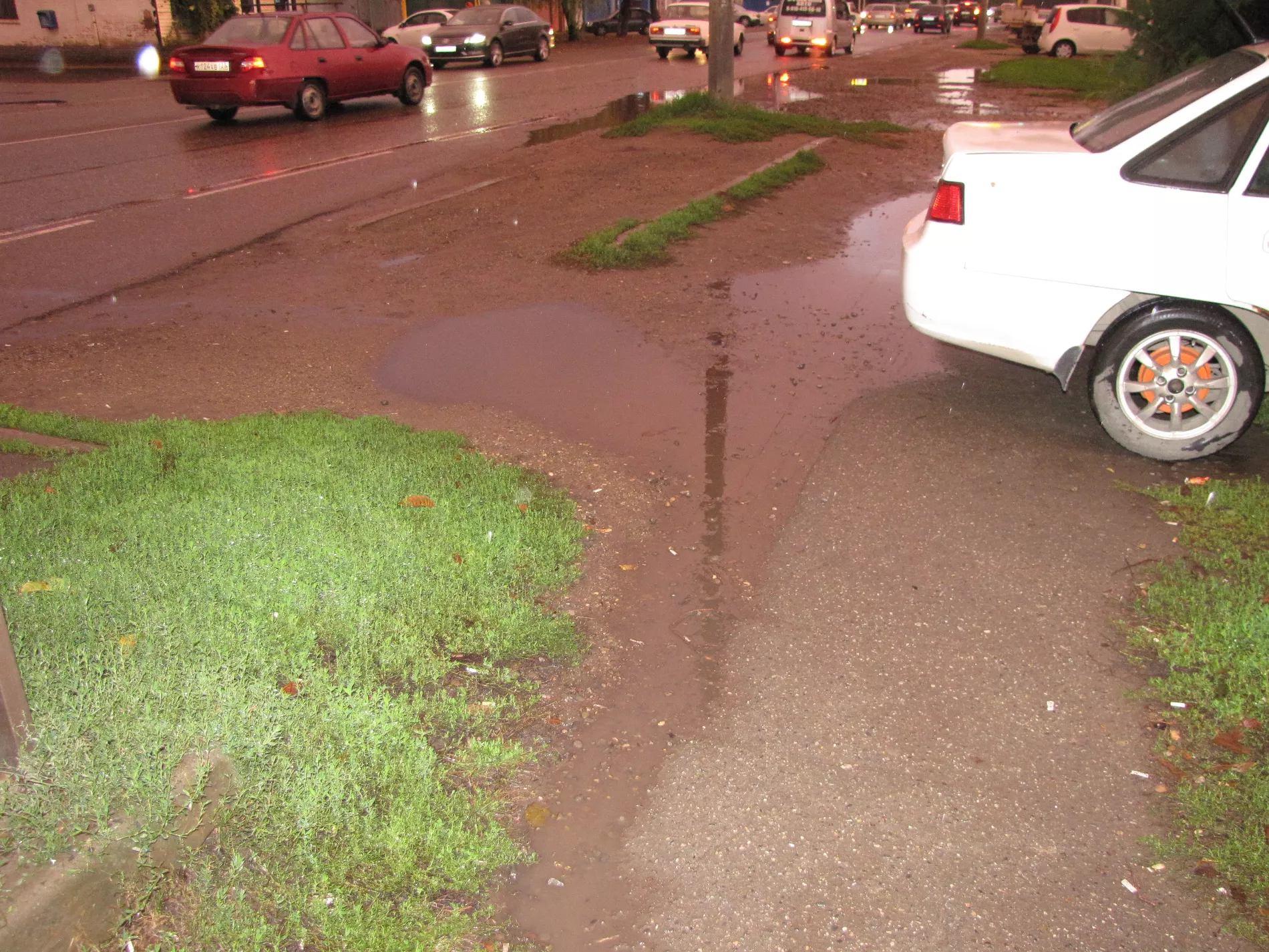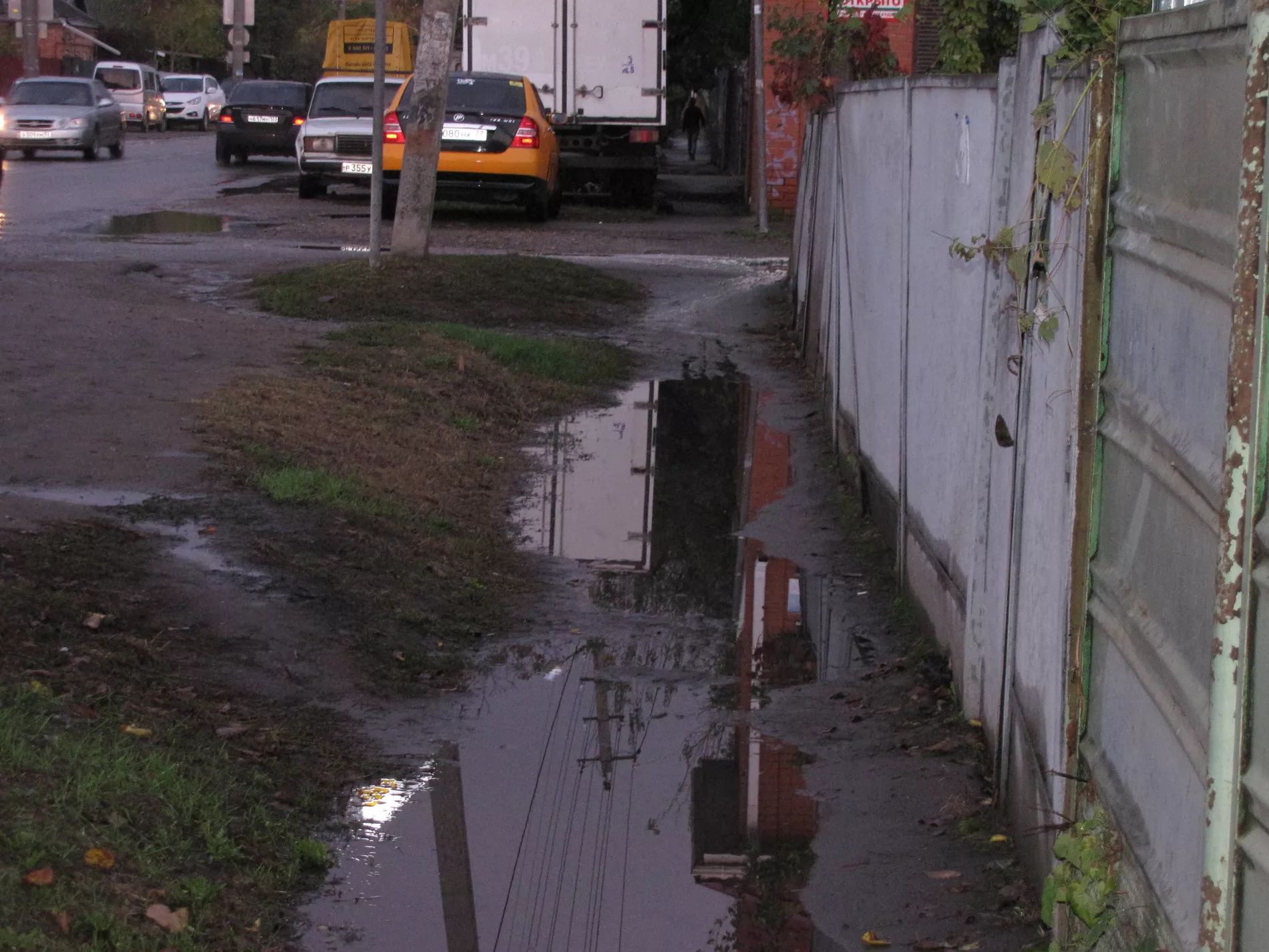 2. Отремонтировать и заасфальтировать проезжую часть, обособив ее высокими бордюрами для предотвращения там парковки. Опустить проезжую часть ниже уровня тротуара, чтобы грязь во время дождя не стекала под ноги пешеходам.