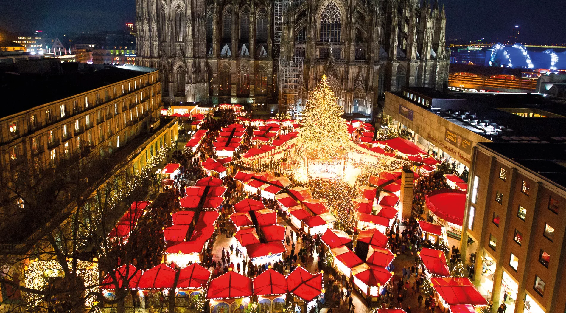 Неудивительно, что именно возле стен главной городской достопримечательности проходит ежегодная рождественская ярмарка. 150 павильонов с местными деликатесами, игрушками, сувенирами и всякой всячиной собирают тысячи туристов со всего мира. Люди пьют традиционный кельш, едят жареные каштаны и веселятся вместе со всей семьей. Прямо на площади идут многочисленные рождественские представления для детей и взрослых, работают карусели, а ремесленники устраивают мастер-классы для всех желающих.
