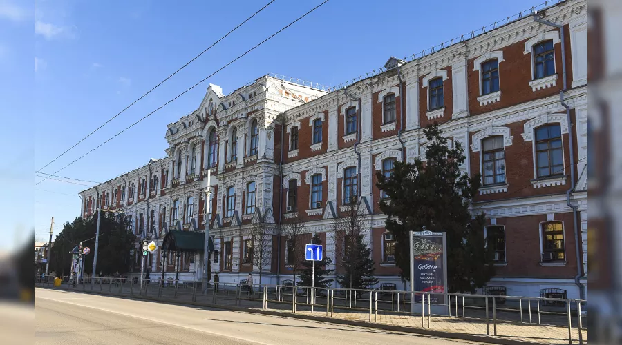Армянская школа на улице Красной была построена в 1916 году по проекту архитекторов Н.М. Козо-Полянского и Л.Ф. Эберга. Школа просуществовала в этом здании до 1942 года. В 1946 году пострадавшее во время войны здание передано Краснодарской краевой научной библиотеке им. А.С. Пушкина. В послевоенные годы здание восстанавливали с помощью немецких военнопленных.