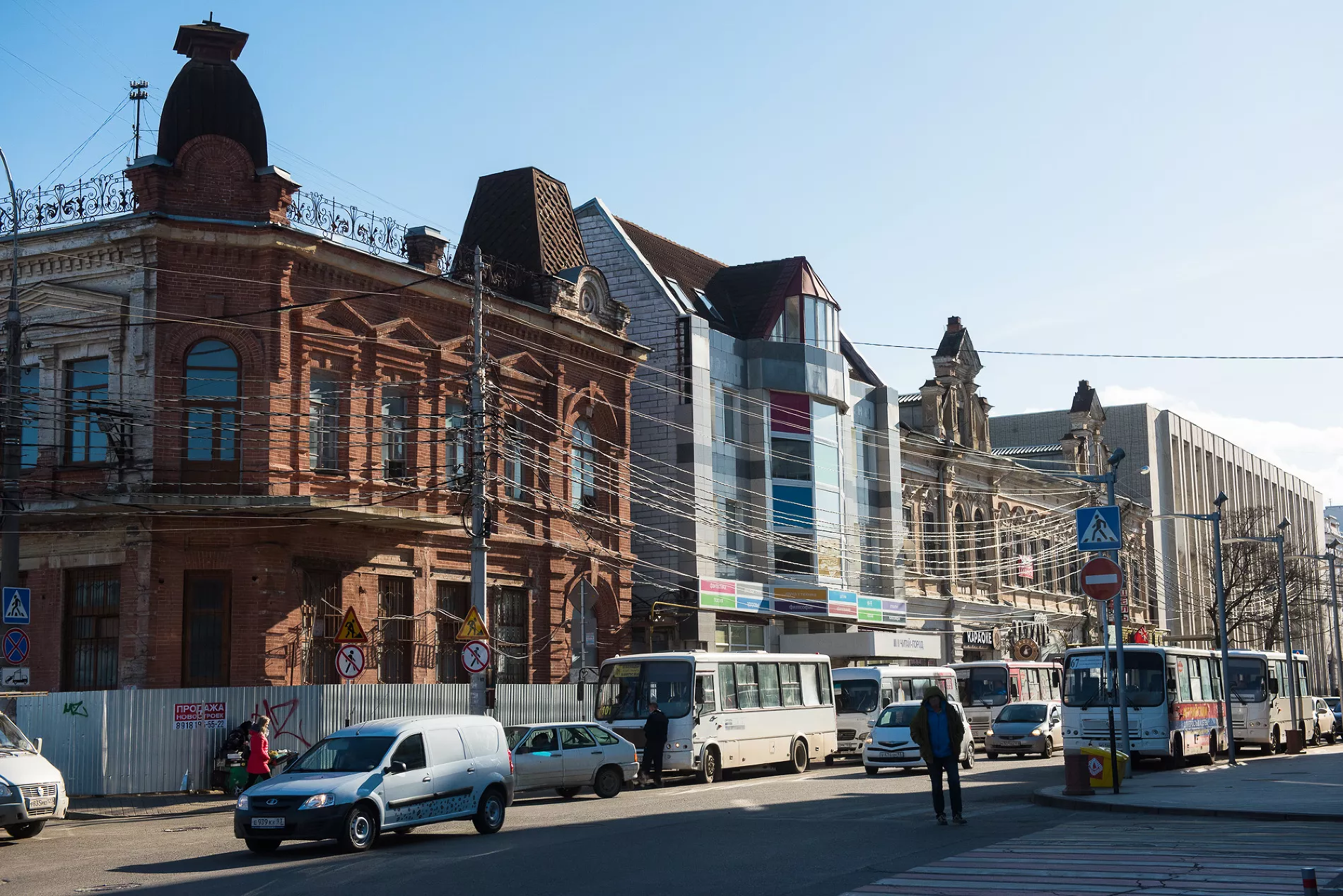 Еще два аварийных объекта располагаются буквально через дорогу от мэрии. Один из них — это дом Кубанской общины сестер милосердия на углу улиц Красноармейской и Длинной. Второй — построенный больше ста лет назад дом купца Лихацкого, находящийся сейчас на задворках нового гостиничного комплекса на углу Красной и Длинной. Раньше в нем находилась православная библиотека, но когда здание начали пытаться перестроить, город забрал его обратно и сейчас пытается найти инвесторов для его реконструкции. Ситуация осложняется тем, что дом пострадал во время строительства гостиницы — на его территории складировали стройматериалы. Кроме того, нормальный доступ к дому ограничен незаконченной стройкой все той же гостиницы.