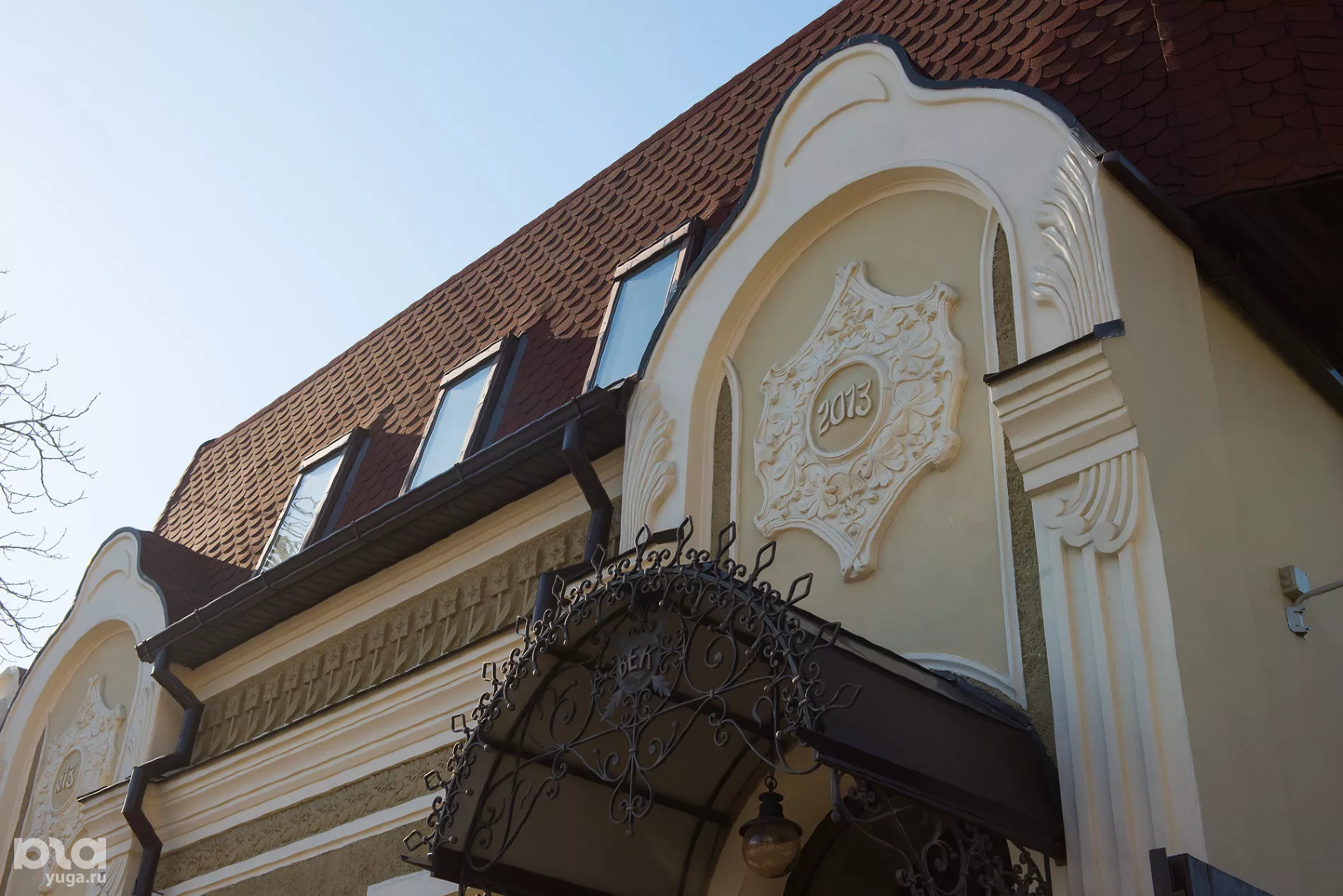 Никакой помощи от государства мы не получали. Реставрация шла очень долго и сложно. Все делали сами. Приходилось согласовывать все — цвет фасада, размещение номера, почтового ящика. На нашем доме висит табличка с указанием того, что это памятник архитектуры, но без указания того, кто его восстанавливал. Единственное, что нам разрешили сделать, — нанести дату на второй картуш на фасаде здания. На одном картуше — 1913 год, на втором — 2013 год. Это дало нам основание написать на чугунном козырьке слово «ВЕК», которое также является сокращением наших с мужем имен и фамилии.