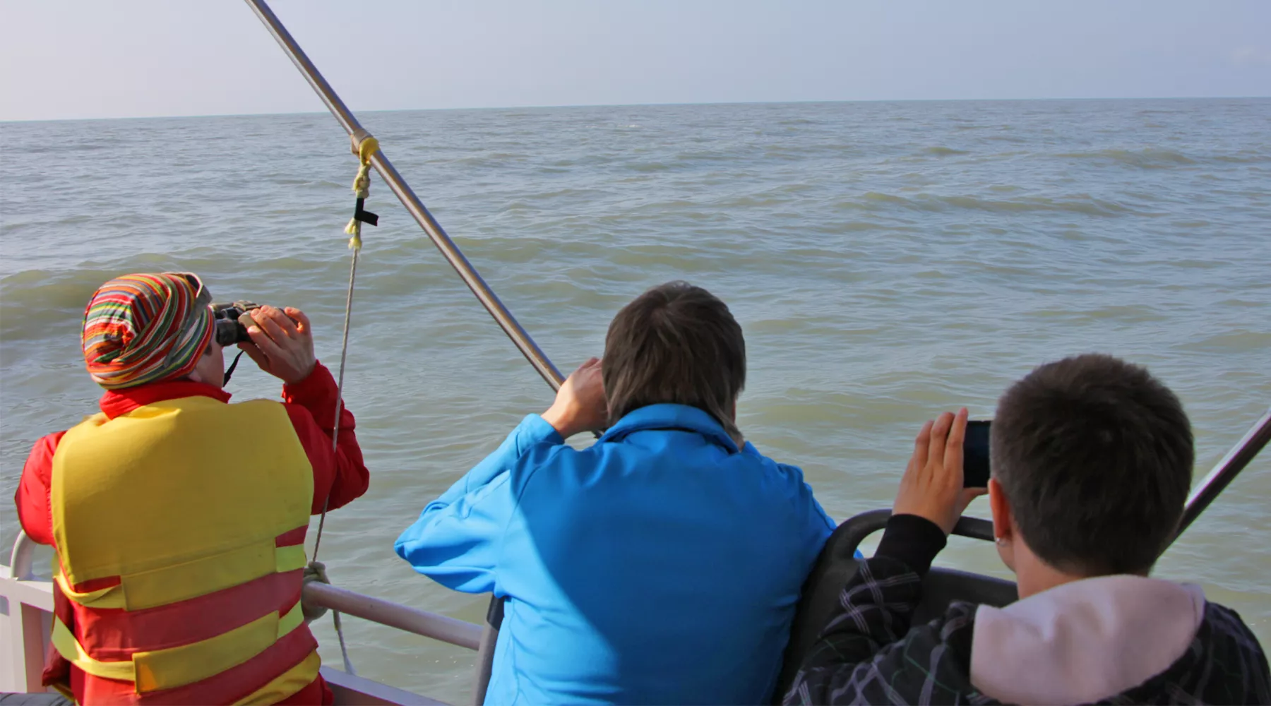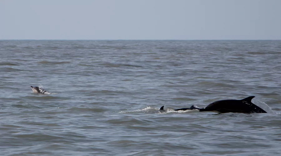 Рано утром в акватории порта «Имеретинский» волонтеров уже ждали два катера. В считанные минуты суда отошли от берега примерно на половину морской мили, и добровольцы оказались в среде обитания дельфинов Имеретинской бухты. Дельфины-белобочки (самцы, самки и даже детеныш) без страха провожали катера. Один из добровольцев даже заметил в бинокль афалину, занесенную в Красную книгу Международного союза охраны природы и в Красную книгу России.