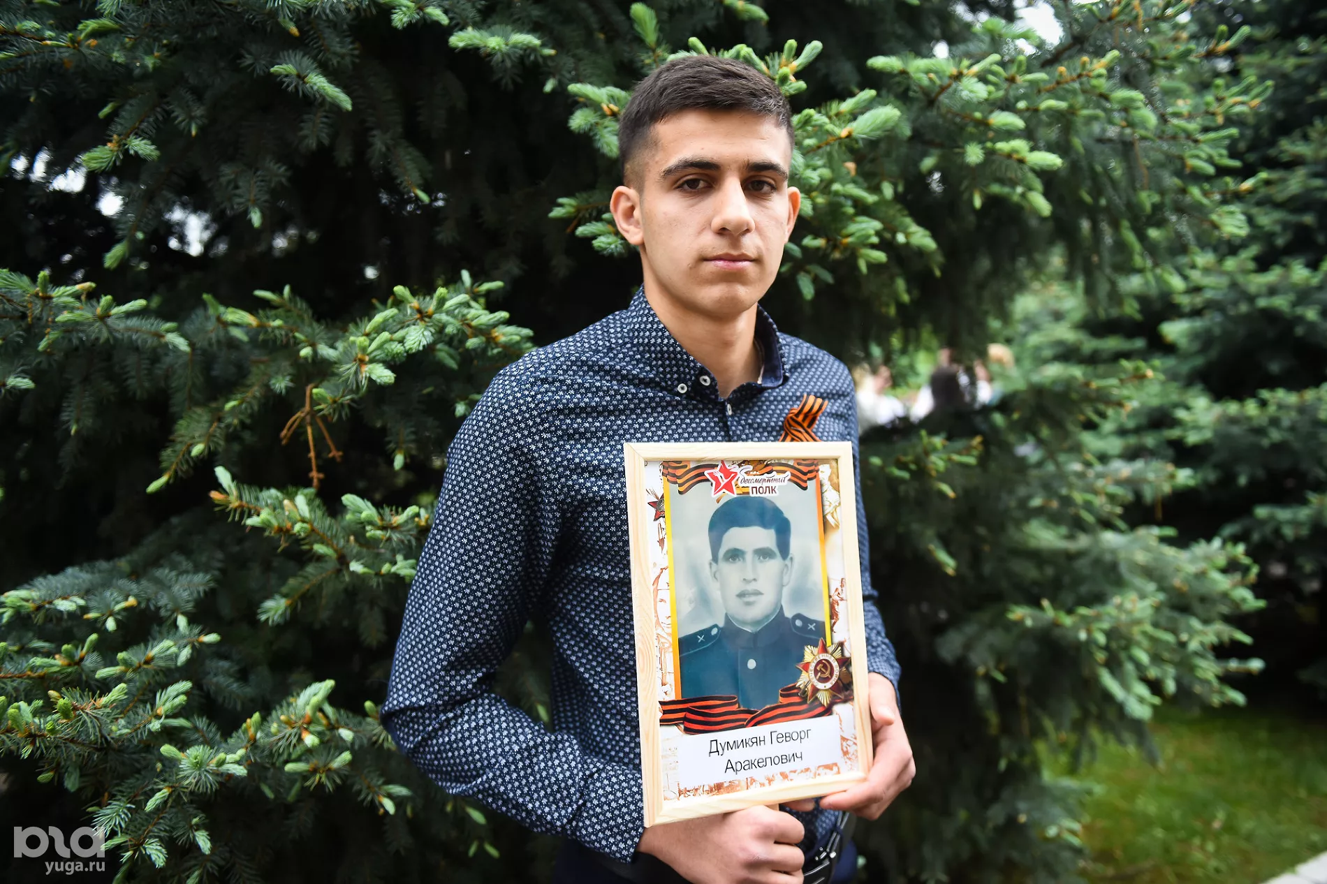 — В «Бессмертном полку» я несу портрет моего прадеда Геворга Аракеловича Думикяна. Его призвали в ряды Советской армии в 1942 году, и он служил в Таманской дивизии в Крыму. Прадед дошел до Берлина и остался жив. Дома его ждала жена и трое детей. Я не застал прадедушку Геворга, но родные с детства рассказывали мне, как он воевал. У нас сохранилось очень много его портретов, я, бывает, пересматриваю их. В «Бессмертном полку» участвую не впервые, несколько раз приходил на шествие в моем родном хуторе Первая Синюха Лабинского района. Война очень страшна, но я горжусь тем, что мой прадед Геворг защищал Родину и не дал фашистам ее захватить. Буквально вчера я посмотрел новый фильм «А зори здесь тихие» о героических девушках. Песни военные тоже нравятся. Мы должны помнить подвиг нашего народа и наших родных. Я рад, что правительство так относится ко Дню Победы и воспитывает чувство патриотизма у молодежи.