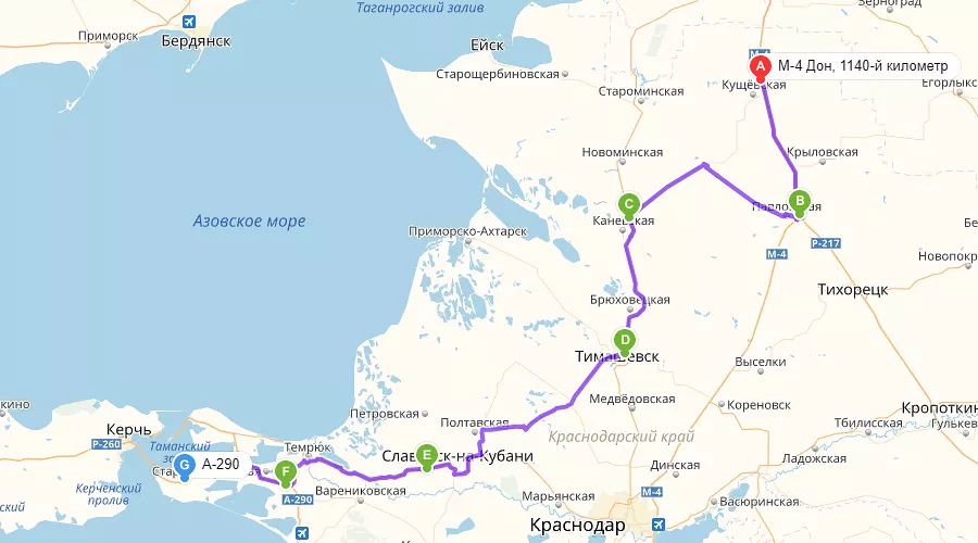 Что касается альтернативы: из Ростовской области требуется выезжать через Азов, направляясь в станицу Староминскую. Затем — через Каневскую, Брюховецкую и Тимашевск. Стоит учитывать скоростные ограничения до 40 км/ч и не самое (мягко скажем) лучшее качество дорожного покрытия.