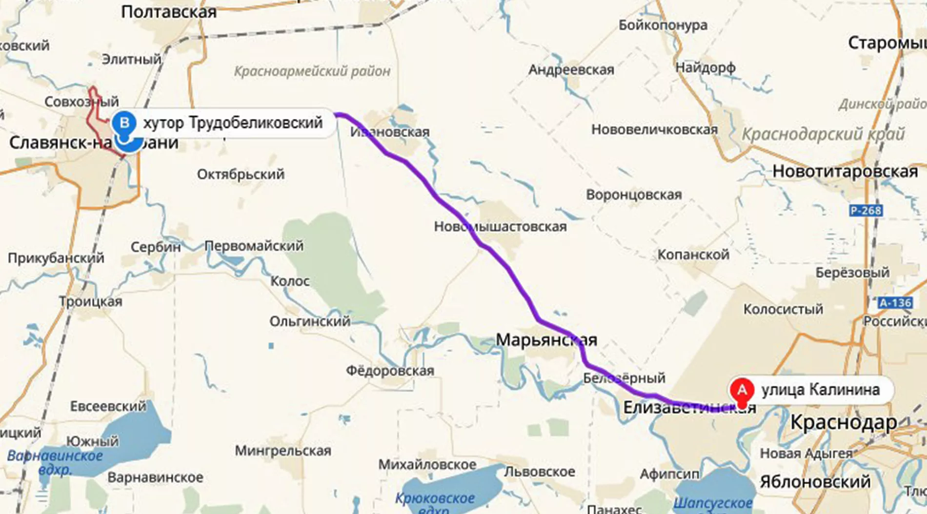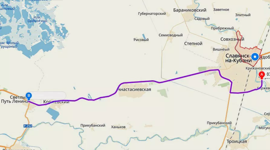 В принципе, описывать маршрут от Белозерного достаточно скучно, так как дорога (главная) здесь одна, без каких-либо развязок. Время движения из Краснодара к первому разветвлению пути — кольцу перед хутором Трудобеликовским — порядка 45 минут при соблюдении скоростного режима. По пути проезжаем станицы Марьянскую, Новомышастовскую, Ивановскую, хутор Водный, поселок Краснодарский (за ним заправка Shell, где вкусный кофе — некомм. прим. авт.) и переезжаем через Полтавский ерик.