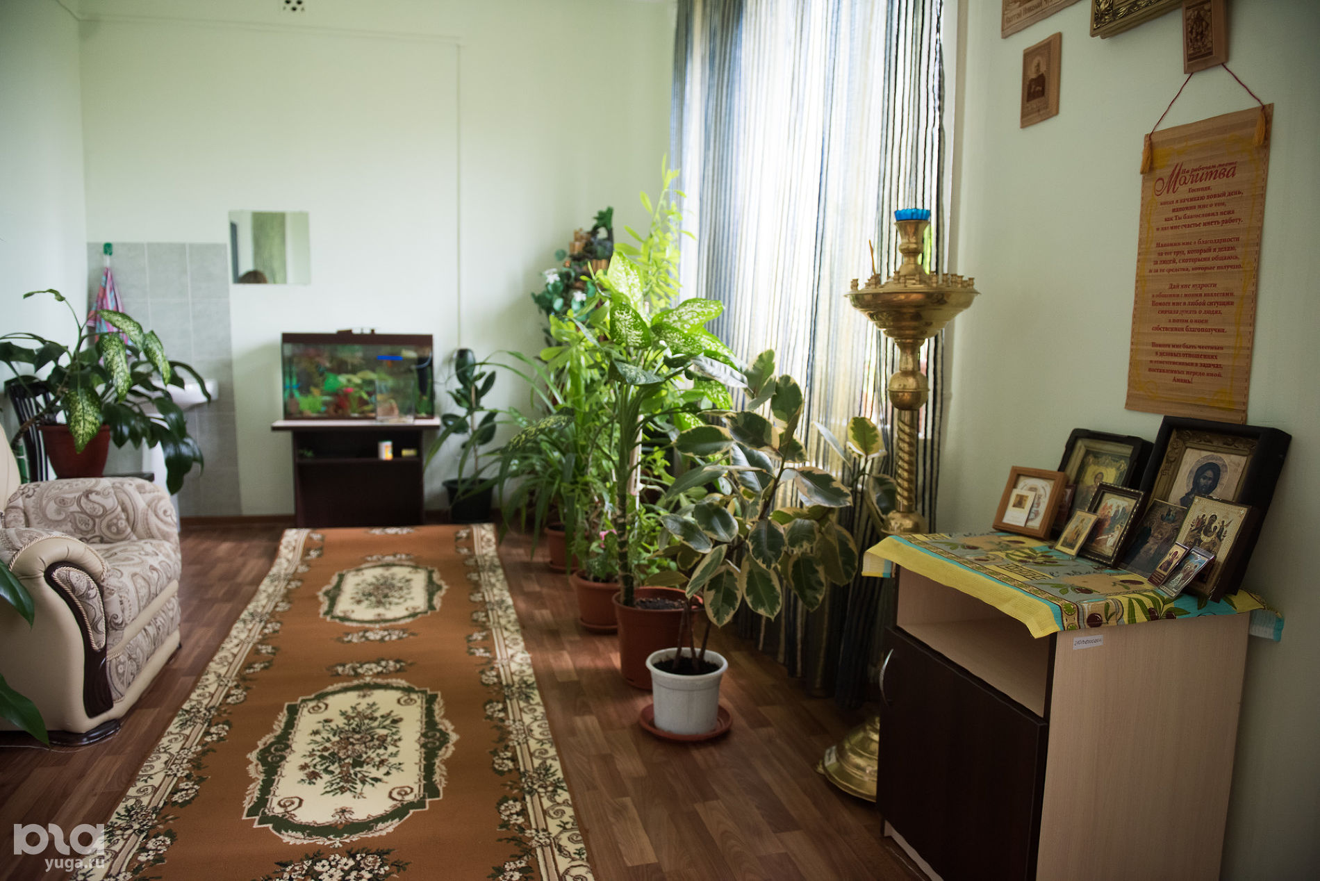 В каждом отделении есть комната психологической разгрузки. Там могут отдохнуть сотрудники хосписа, больные и их родственники. В комнатах стоят православные иконы, много цветов в горшках, диван и телевизор. Есть даже аквариум с рыбками и черепашкой. На третьем этаже для больных, которые могут ходить, в коридоре расположен шкаф с книгами. Заведующая отделением № 2 Оксана Мустафа рассказывает, что библиотеку собирают сами сотрудники. Телевизоров в палатах нет — больные их не смотрят, но, говорят врачи, если захотят, то можно подключить.