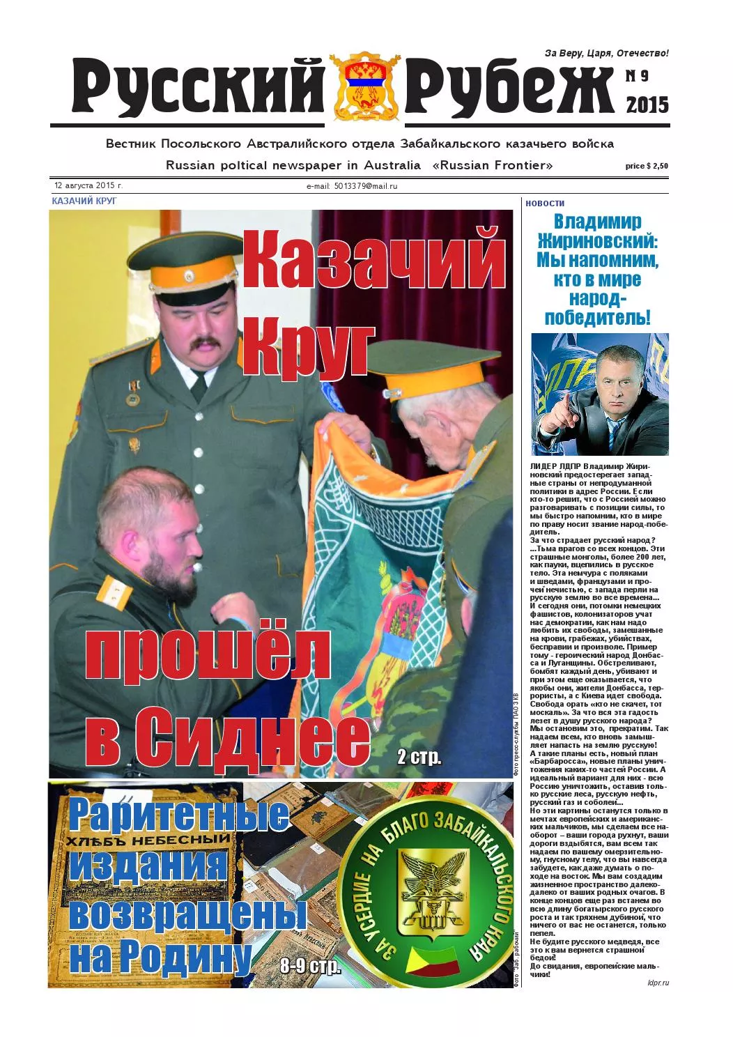 «А ведь немецкие и французские казаки были антироссийскими казаками. На форме кубанской был флаг Америки. Мы, мол, казаки Америки. А мы сразу сказали: нет, мы не казаки Австралии, мы забайкальские казаки на территории Австралии.