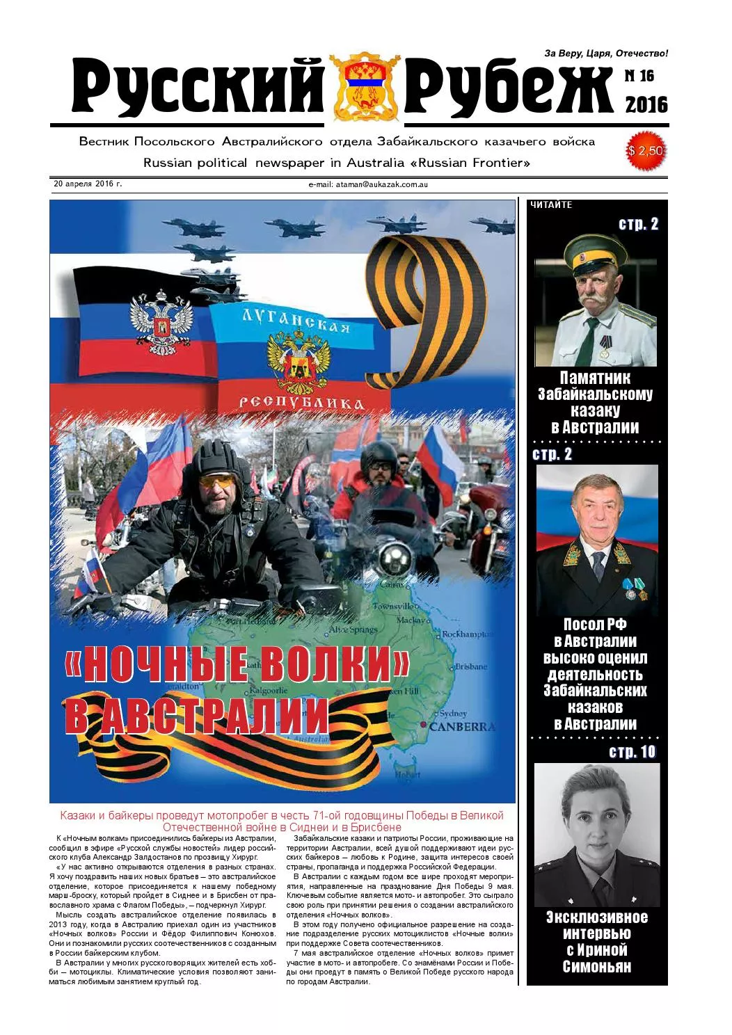 После этого целый год никаких официальных новостей по поводу сотрудничества и встреч австралийских и кубанских казаков не поступало. Портал Юга.ру решил разобраться в ситуации и узнать подробнее об австралийском казачестве.