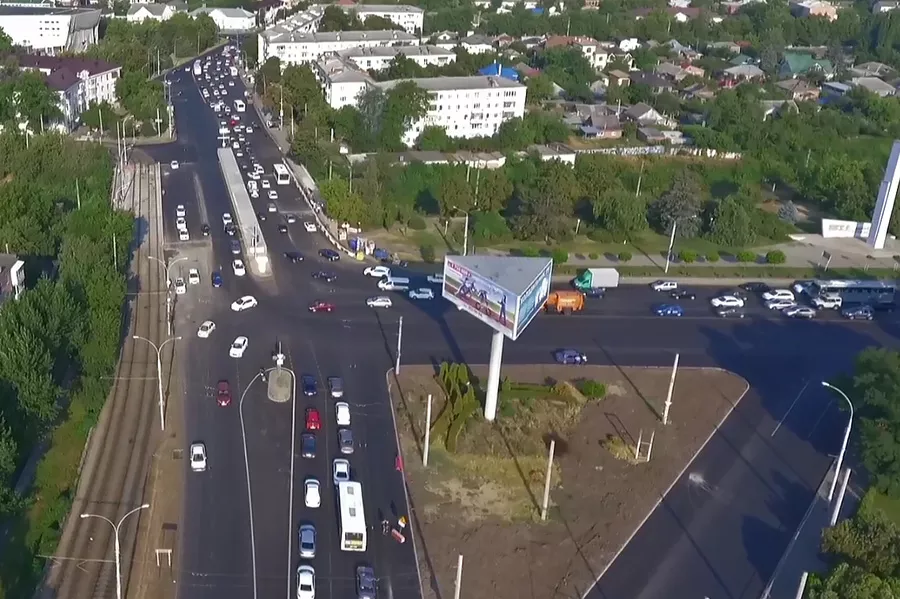 Перекресток ул. Ростовское шоссе/ул. Офицерская (бывшее Зиповское кольцо) после реконструкции © Фото телекомпании «Краснодар» -