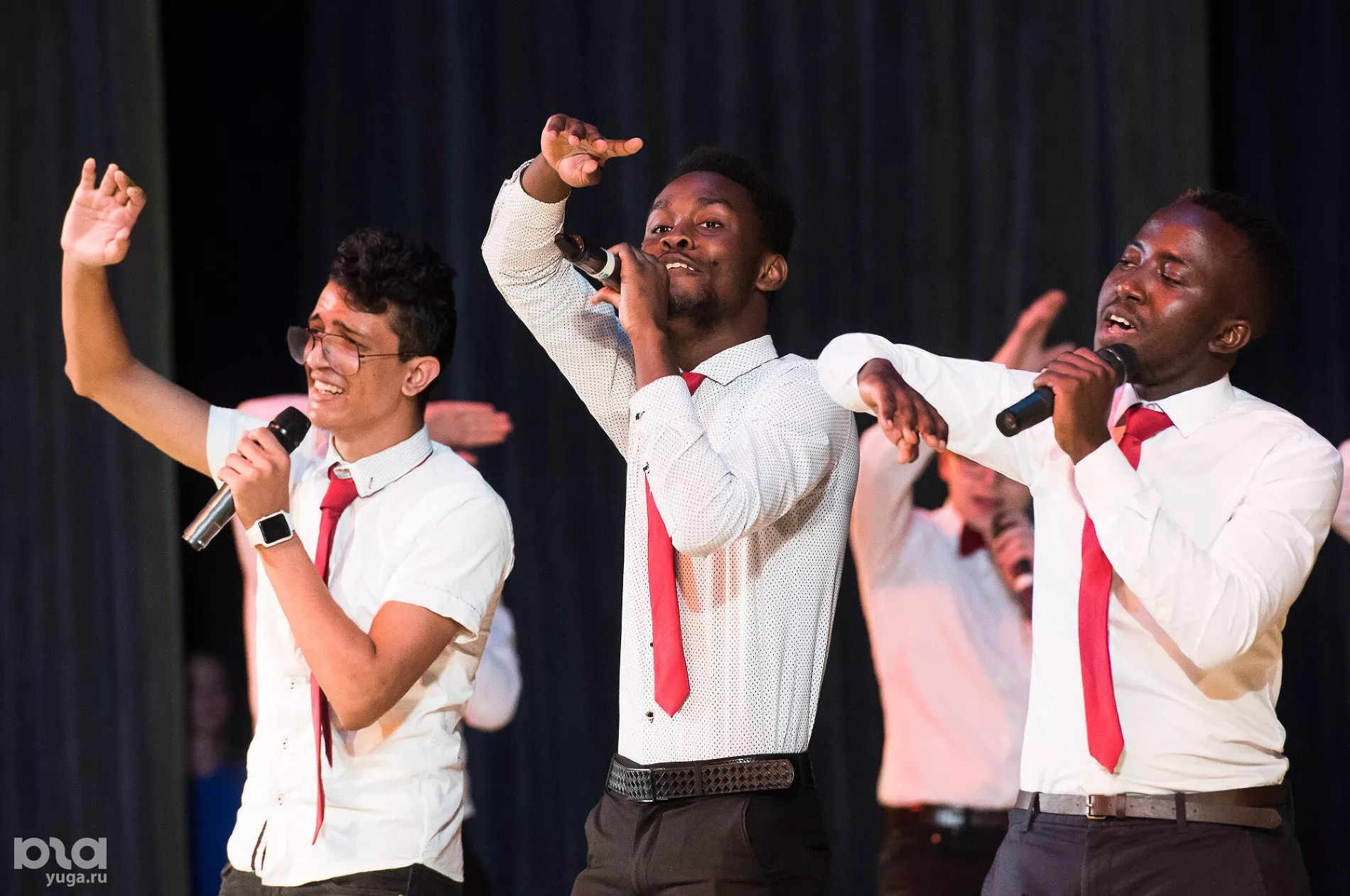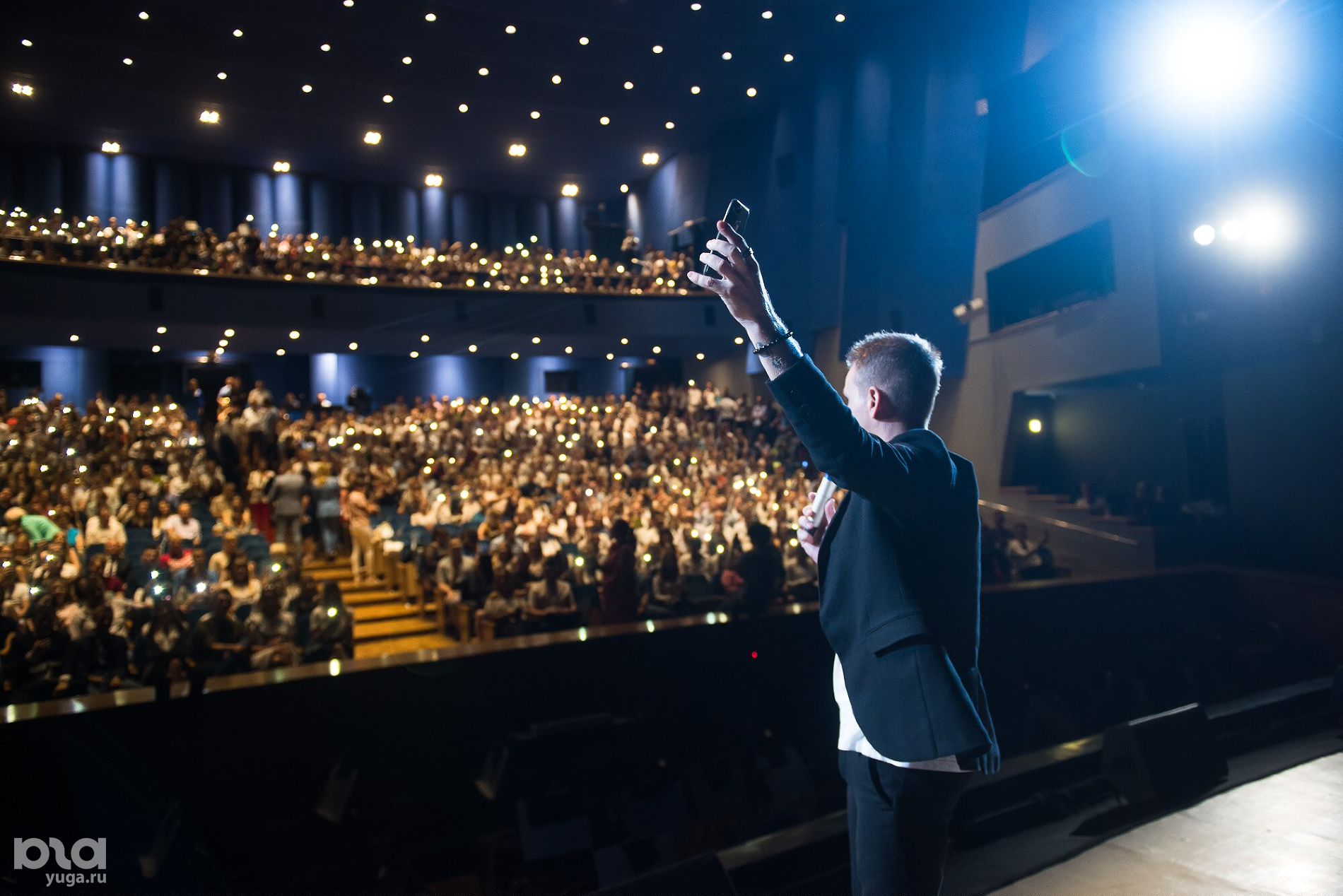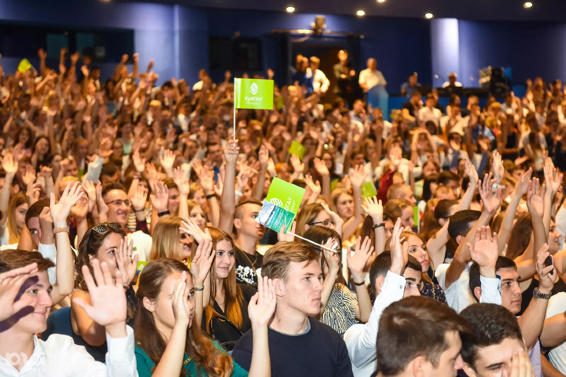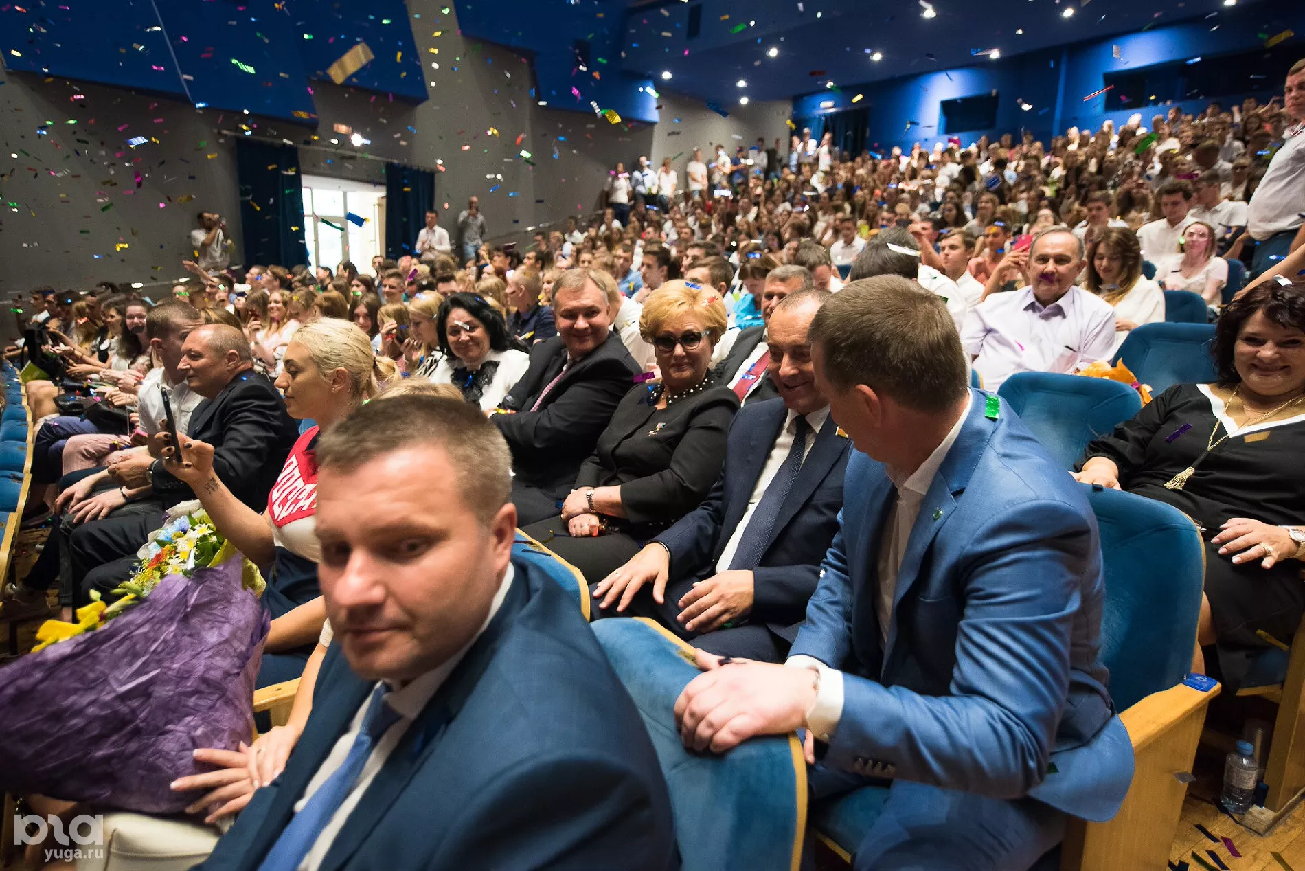 Ко времени, обозначенному в пригласительных, весь театральный зал, включая балконы, был заполнен. Перед началом мероприятия будущие студенты с подачи ведущего начали хлопать в такт мелодии и поднимать «волну», а также выяснили, сколько из присутствующих в зале окончили школу с медалью и откуда приехали в Краснодар учиться.