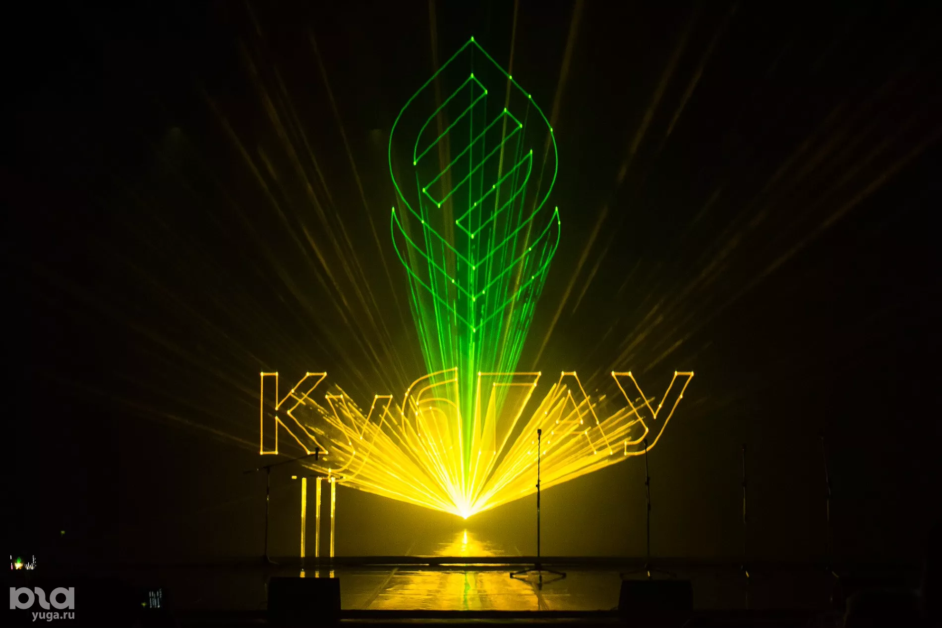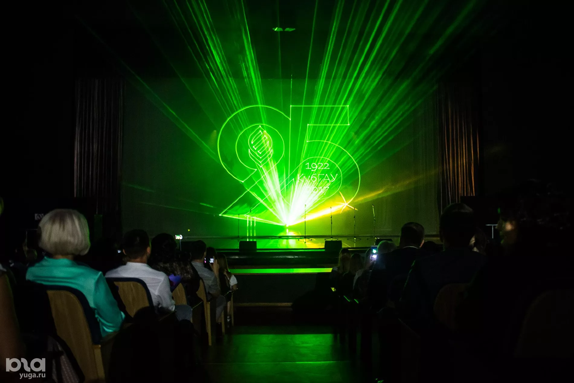 Официальная часть началась с тематического лазерного шоу, посвященного истории и современности КубГАУ. Парящие в воздухе динамические виртуальные объекты выглядели красочно и завораживающе.