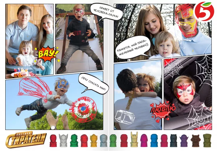 В целом набор ластиков Marvel — это не только интересная игрушка и функциональная канцелярская принадлежность, но и отличное дополнение к проектам «Пятёрочки», посвященным супергероям. А это увлекательные игры и даже создание комикса собственными руками. Для ребенка такое занятие наверняка станет отличным вознаграждением за хорошее поведение или положительную школьную оценку!