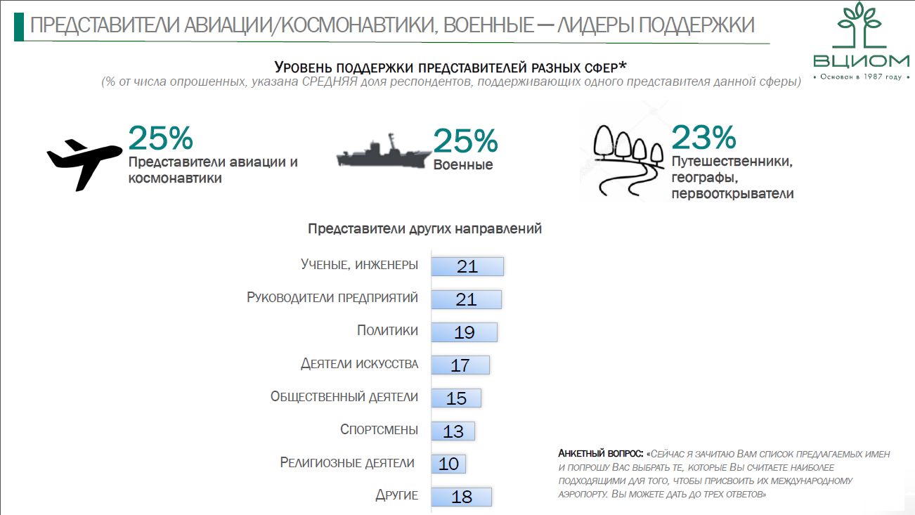В начале октября был представлен масштабный проект переименования 47 российских аэропортов в честь выдающихся соотечественников. Инициаторами идеи выступили Российское военно-историческое общество, Русское географическое общество, Российское историческое общество и Общество русской словесности. За воплощение проекта в жизнь и координацию взялась Общественная палата России.