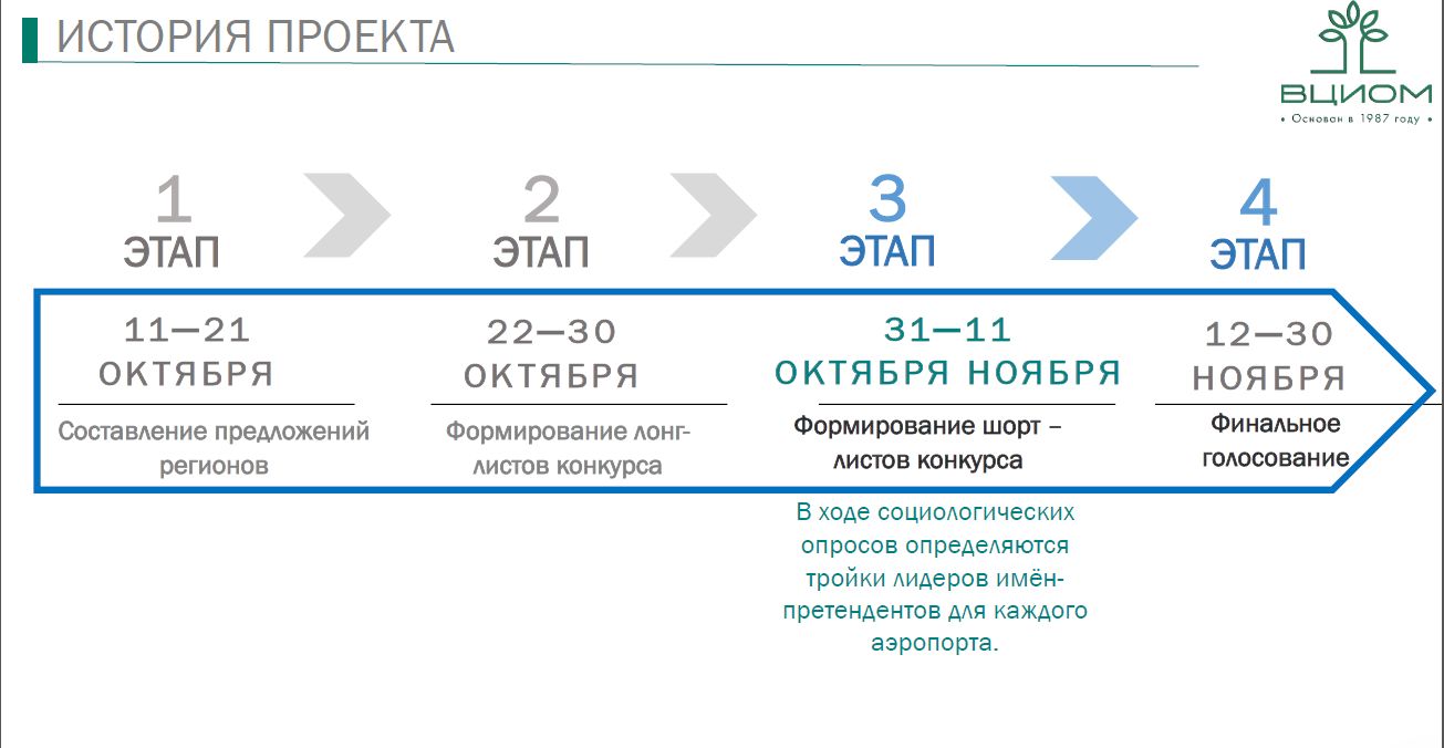 Сначала по результатам общественных слушаний регионы сформировали первоначальные списки претендентов для названия местных аэропортов.
