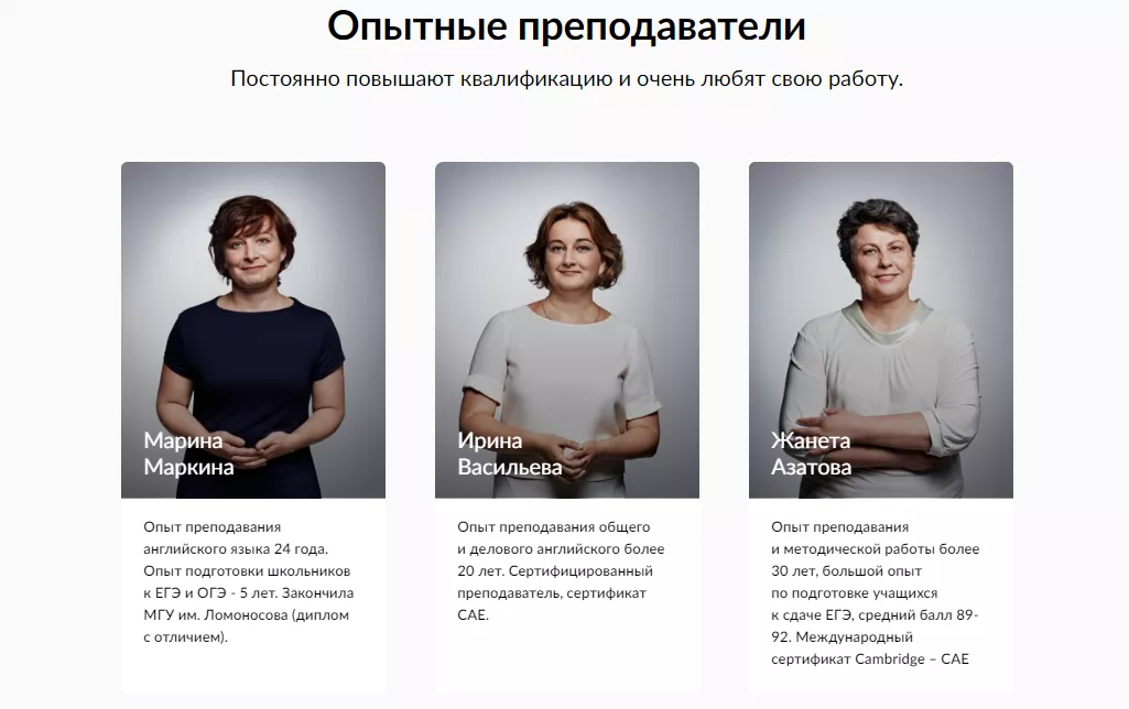 За каждым закрепляют педагога, которого подбирают с учетом уровня знаний ученика и его целей. В Smart University преподаватели проходят четыре этапа отбора, а потому остаются только те, у кого есть высокий уровень владения английским языком, желание работать с форматом ЕГЭ и умение найти подход к любому ребенку.