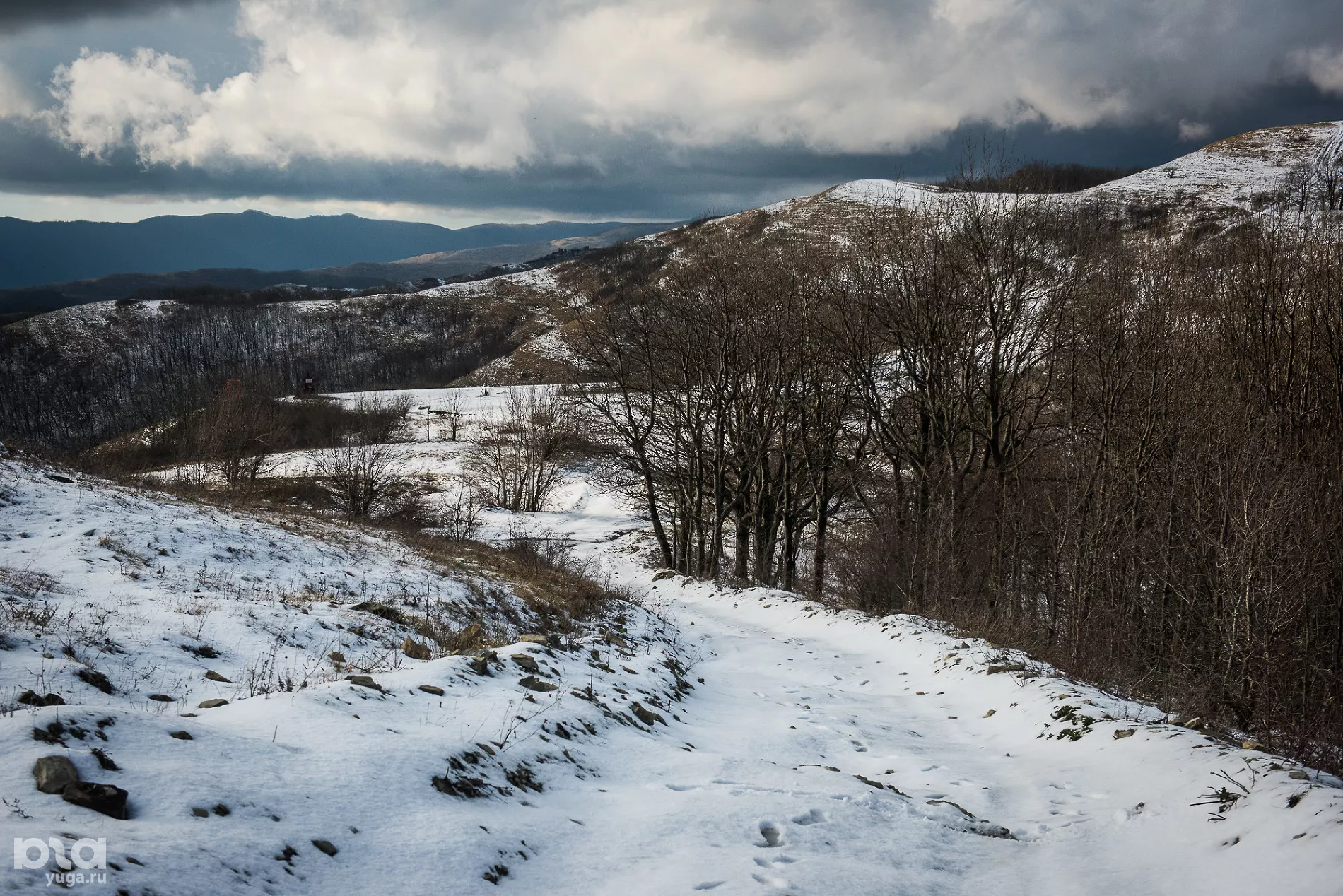 Если желание посетить перевал Грозовые Ворота возникло в осенне-весенний период, то стоит выбрать средство передвижения посерьезней. Мы отправились сюда в декабре, во время дождей, которые поливали нас у подножья, а на высоте уже выпал снег и дул сильный ветер.