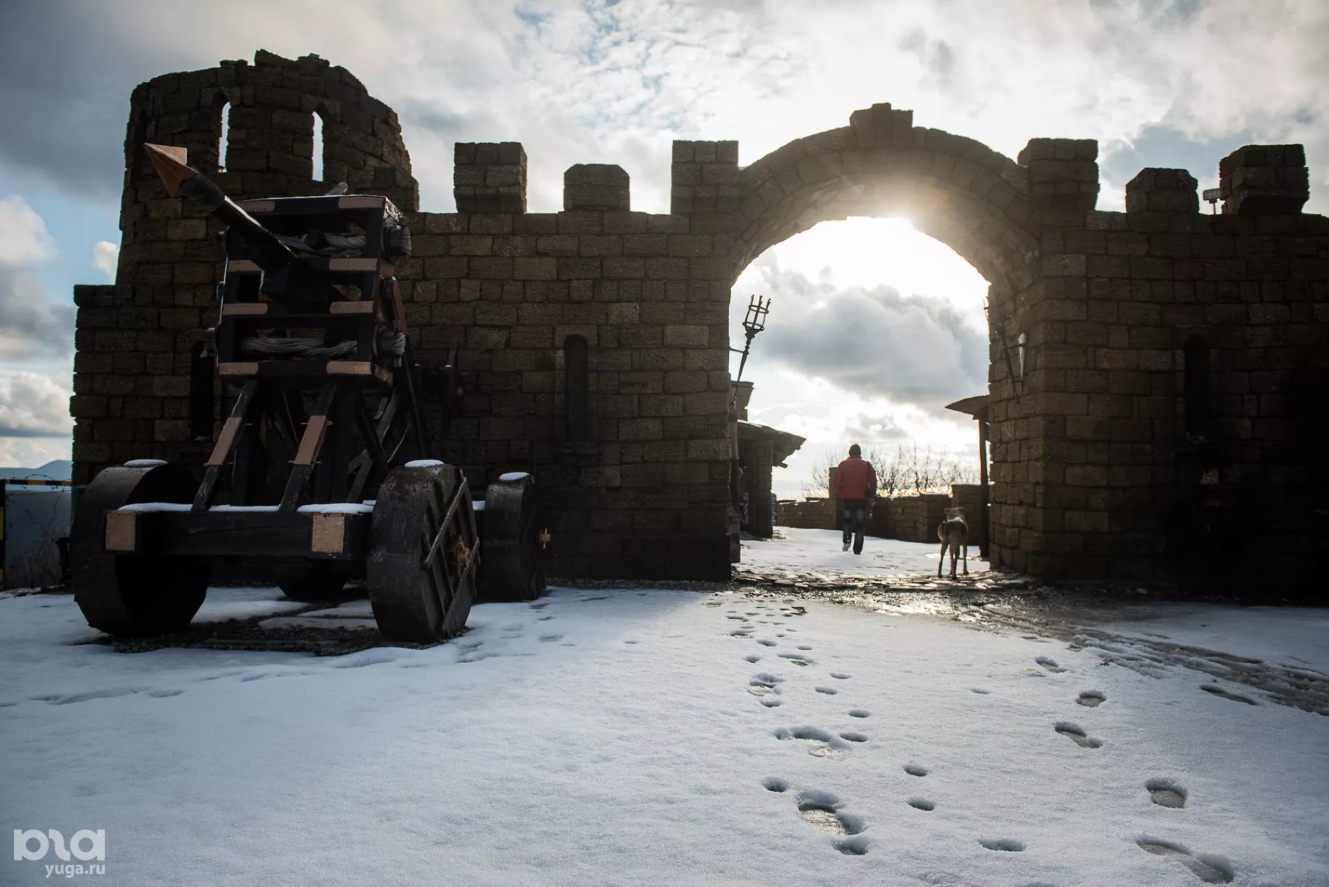 В нашем распоряжении была пневматическая подвеска с регулируемым дорожным просветом до 28 см, полный привод, режимы передвижения «снег» и «внедорожный», что позволило пробраться через брод, грязь и взобраться на заснеженную гору перед самой крепостью. Тут хочется поблагодарить ребят из «Фольксваген Центр Юг-Авто» за терпение и понимание. Из-под нас машины возвращаются, как правило, в состоянии «танки грязи не боятся». Объезжаем по полной программе, как скакунов на Кавказе.