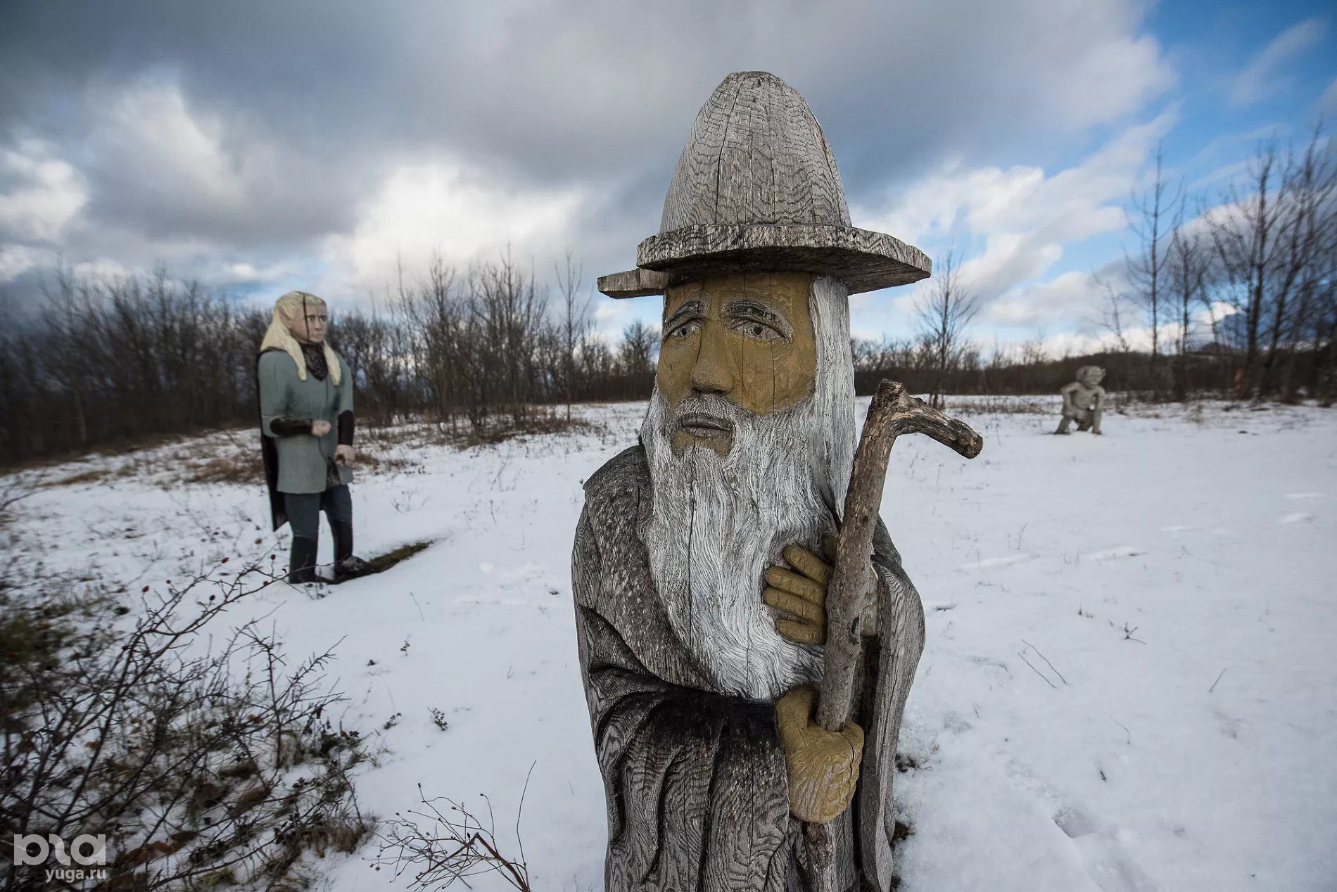Это настоящая находка не только для детей, но и для взрослых. Здесь можно повстречать многих персонажей из отечественных и иностранных фильмов, а также побывать на славянском капище. Даже для человека, совершенно не посвященного в тонкости языческой религии наших предков, ощущения достаточно интересные. Сварожий Круг не изучили, но попросили Перуна подождать со снегопадом, пока не выберемся на трассу. Помогло.