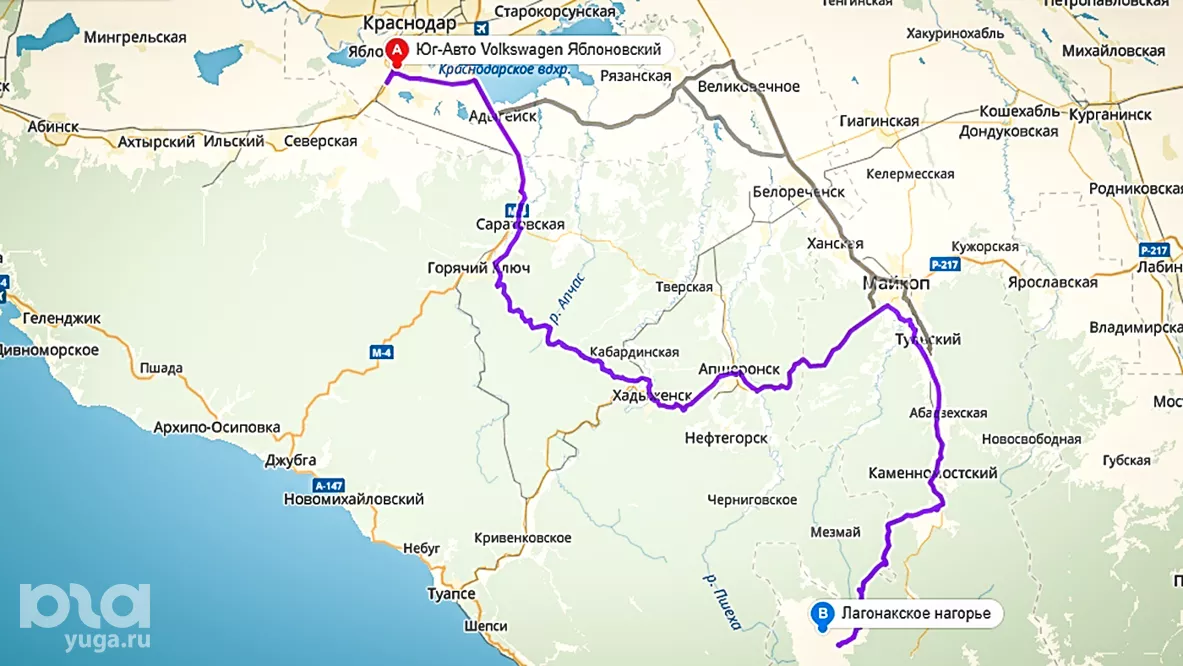 Автомобиль оснащен системой навигации, которая безошибочно выводила нас к местам назначения. Но если таковой нет, то ехать к этим местам из Краснодара следует через Саратовскую, Апшеронск, в сторону станицы Нижегородской (через Красный Дагестан).