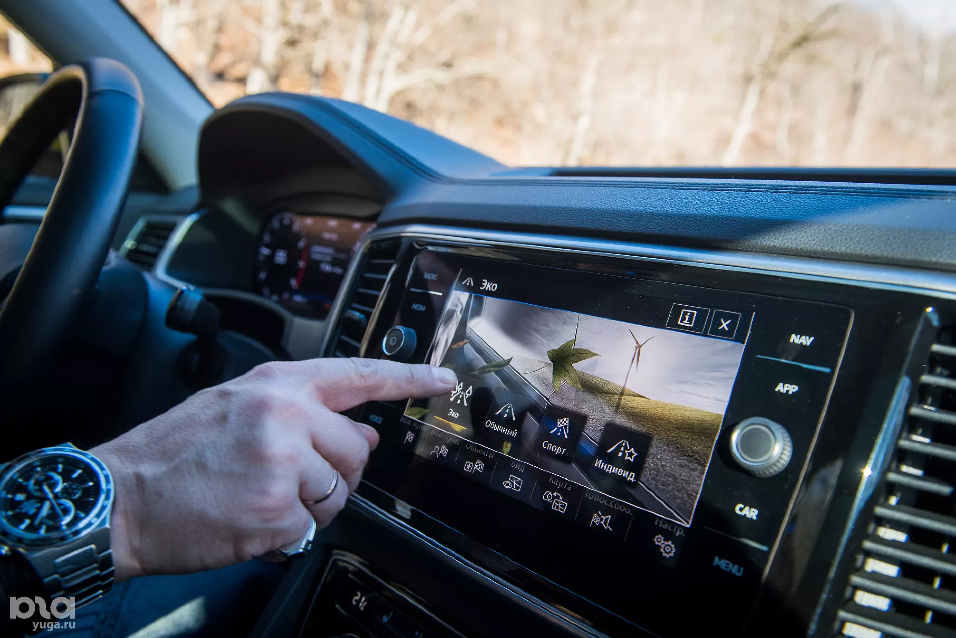 Взбираться в горы для этого великана не проблема. Проблемой не будет и трасса, где Teramont чувствует себя прекрасно. Ставим режим «эко», и расход топлива этого исполина у нас составил всего 10,5 литра на сотню километров пути. Вне дорог выбираем соответствующий режим, и муфта подключает обе оси, что подразумевает повышенную проходимость. Ну а в горах плато Лагонаки нас выручает режим «снег». Кстати, развернуться можно даже на узкой дороге. Система кругового обзора нам в помощь.
