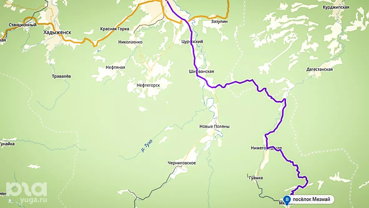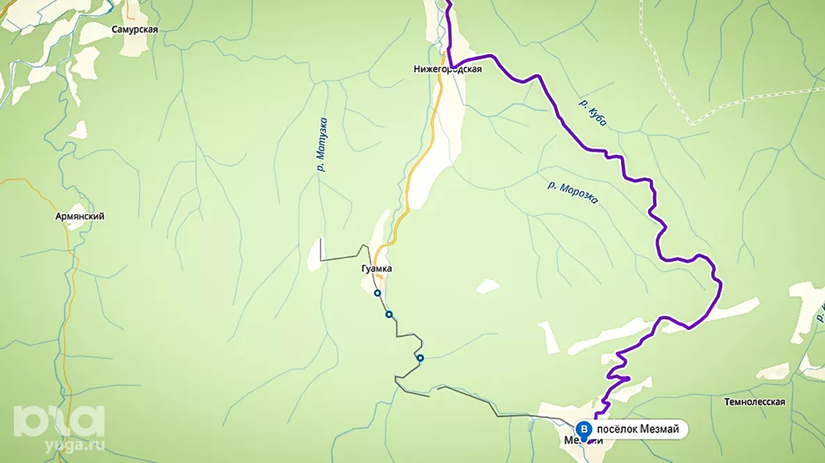 А вот в Нижегородской выбираем, куда поедем далее: в Гуамку или Мезмай. Там есть развилка. В Гуамке надо ехать по главной дороге до станции. Там стоят ж/д-вагоны, не пропустите. В Мезмае нужно проехать к улице Лесной или Железнодорожной. В первом случае можно прогуляться в горы, а во втором… вот тут стоит обозначить, что из Гуамки в Мезмай как раз и идет та самая узкоколейка.