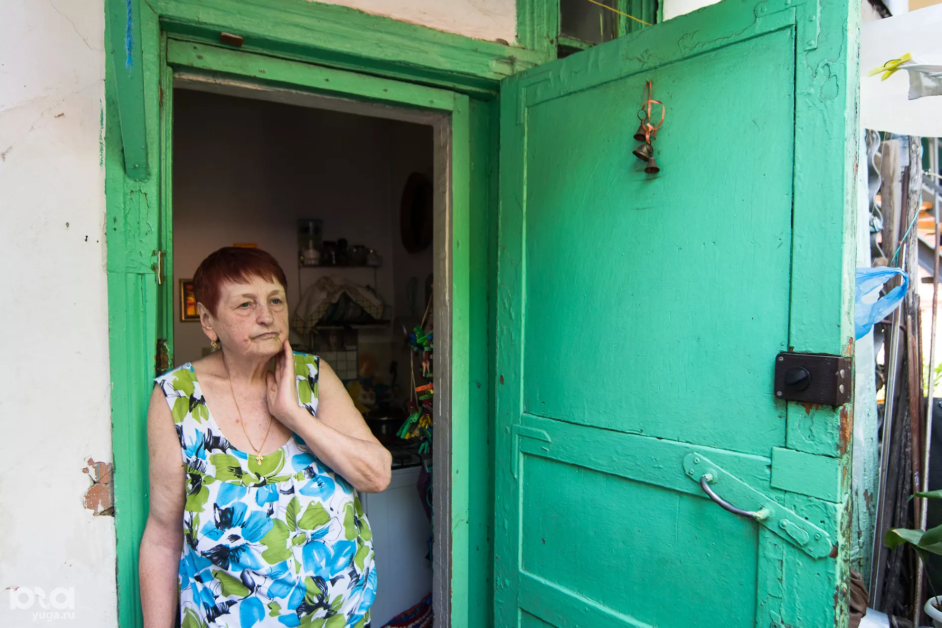 Но я хочу сказать, что лучше я буду жить здесь, чем меня запрут на какой-нибудь 14-й этаж. У меня клаустрофобия, я в жизни не поеду на лифте. У меня сердце вот здесь и страх, что лифт оборвется и я сейчас умру от того, что не хватает воздуха. Не хочу в квартиру. Летом прекрасно здесь купаюсь — нагрела литра три воды, разбавила ведром, окатилась, и уже хорошо. Кооперативный рынок тут недалеко, поликлиника возле театра оперетты [сейчас Музыкальный театр — Юга.ру], меня это устраивает. Да, тяжеловато, но меня все устраивает. А если я буду жить в квартире, да я мхом зарасту.