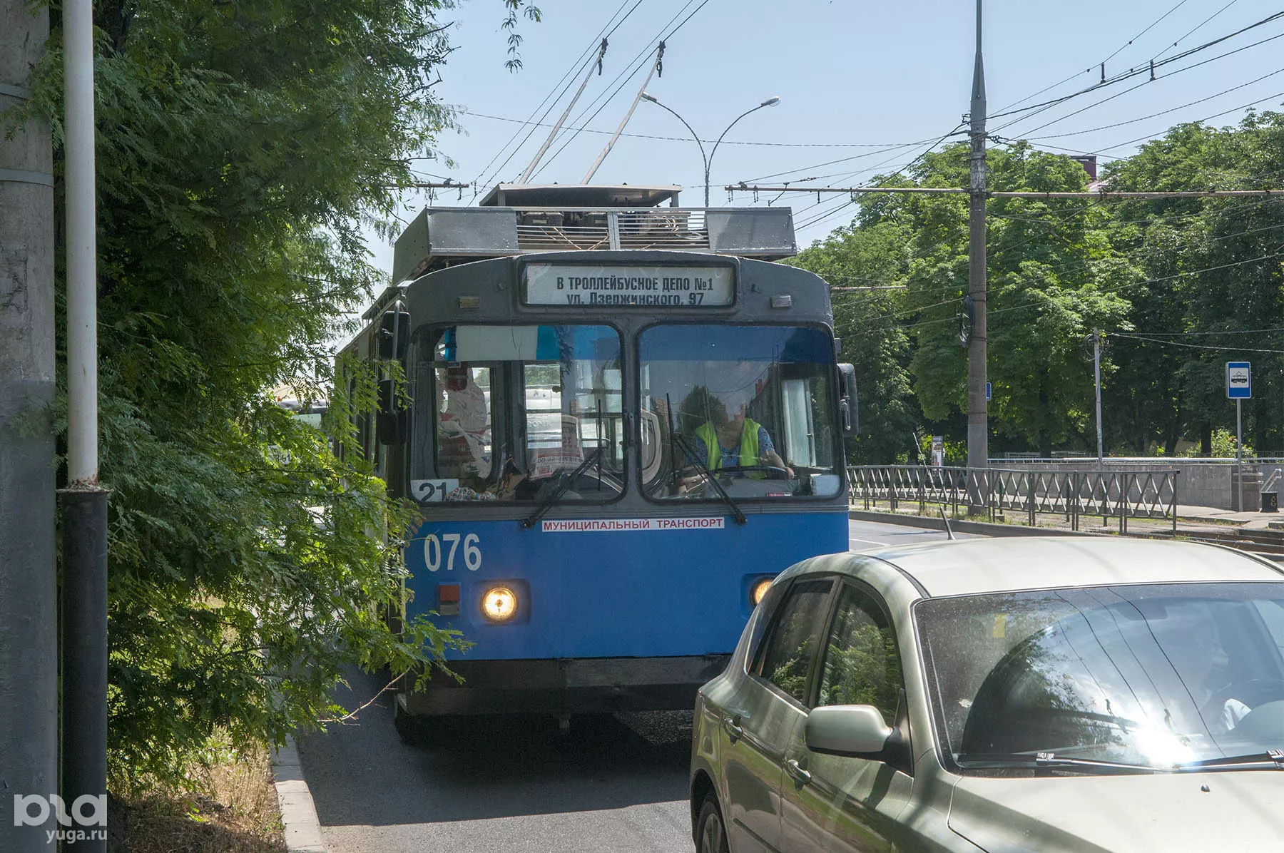 С завидной регулярностью мимо нас проезжают автобусы № 96, 3-я, 4-я и 11-я маршрутки, но нашего 21-го нет. Справедливости ради надо сказать, что людей, кроме нас, на раскаленной остановке тоже нет — то ли все знают, что ждать троллейбус в обеденное время бесполезно, то ли его потому и нет, что нет и желающих. Спустя почти 50 минут ожидания появляется долгожданный транспорт.