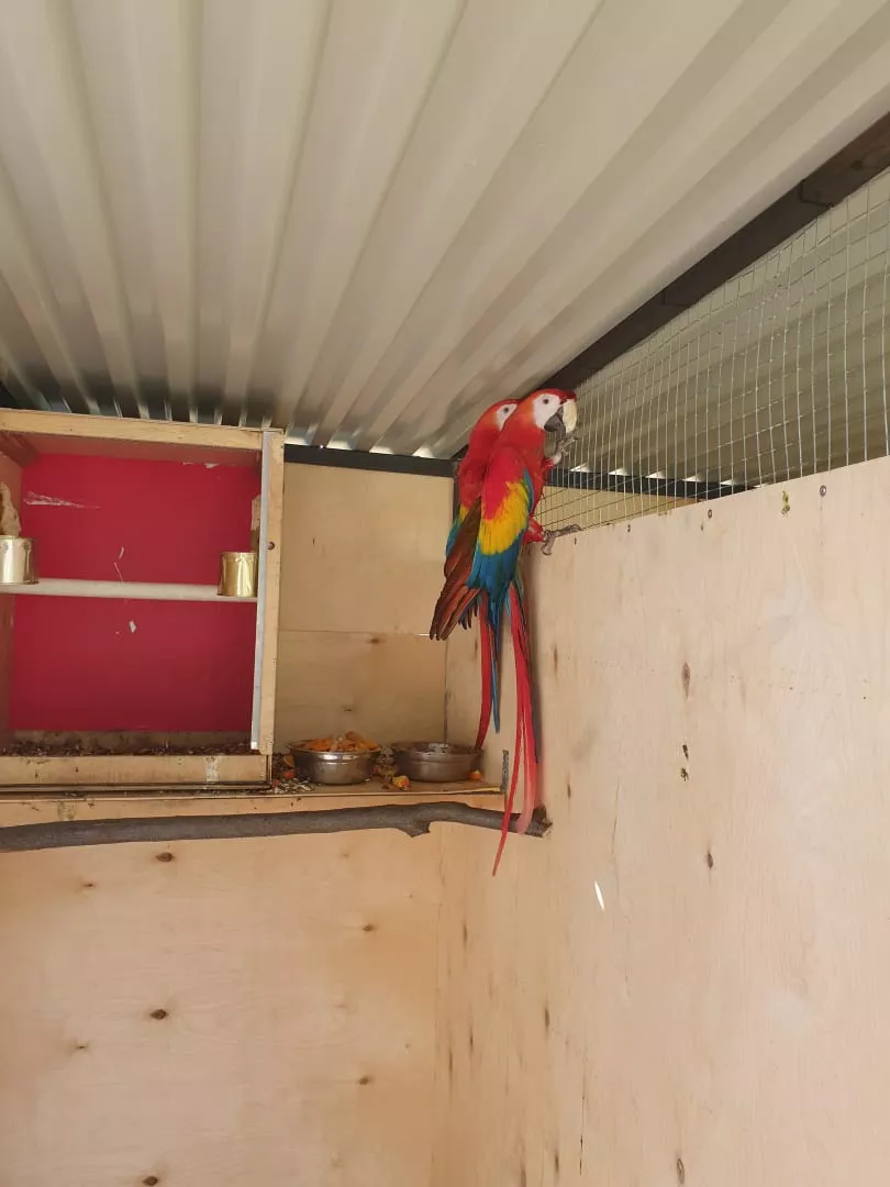 - попугай Ара 5 штук (один сине-желтый, два красных макао, два зеленокрылых);