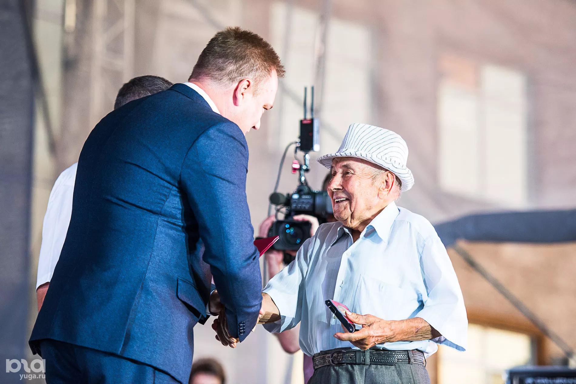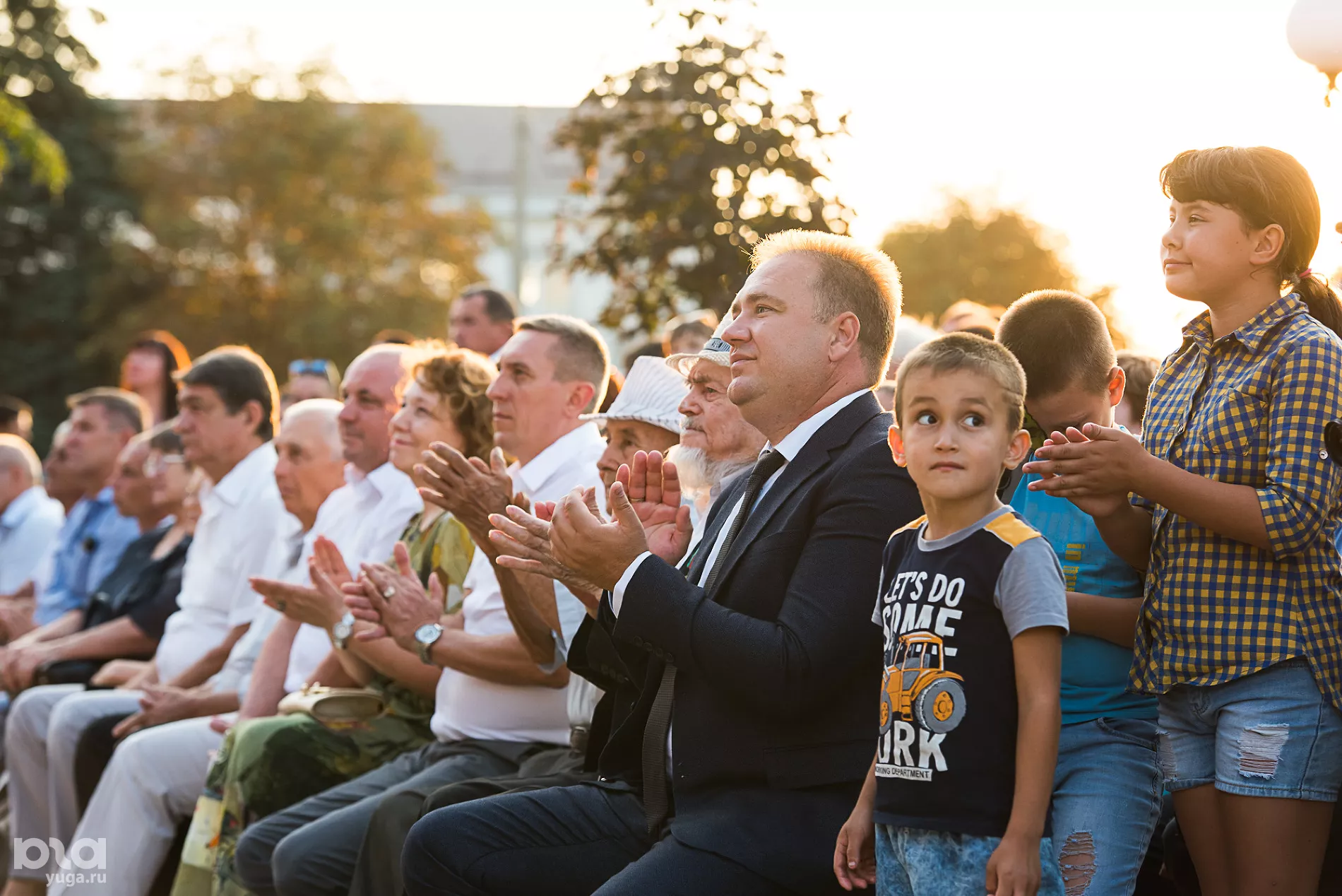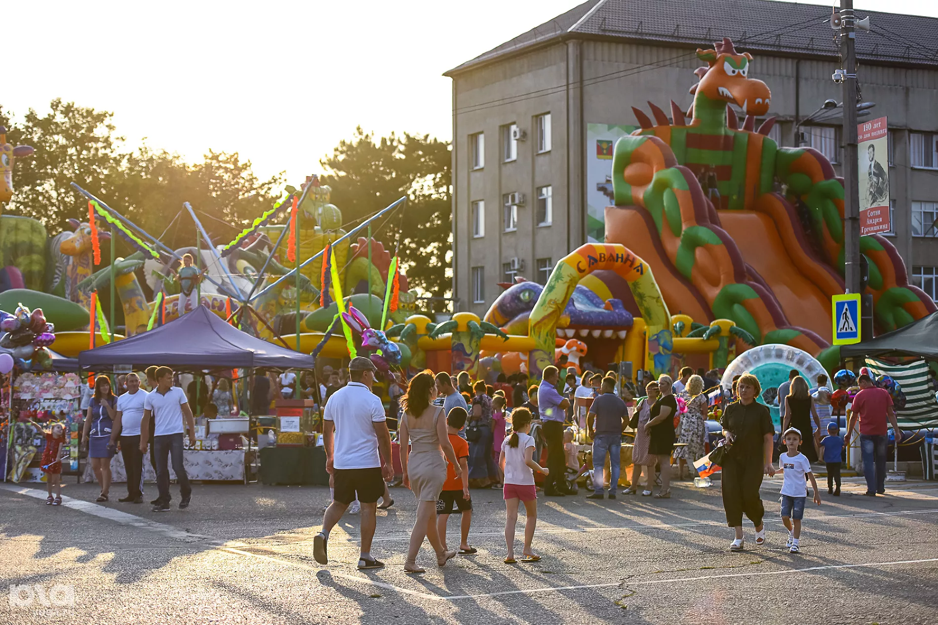 Несколько тысяч жителей и гостей района, собравшихся перед сценой, установленной в самом центре Тбилисской, лично приветствовал глава района Евгений Ильин: