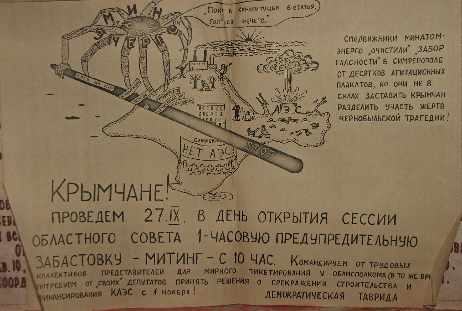 Лидия Григорьевна с гордостью вспоминает о том, как ей с товарищами удалось собрать подписи 11 тыс. крымчан против строительства станции. Едва ли не каждый день в Щелкино, райцентре Ленино и других городах проходили многочисленные митинги и встречи, на которые съезжались люди из Симферополя, Керчи, Севастополя и других поселений полуострова.
