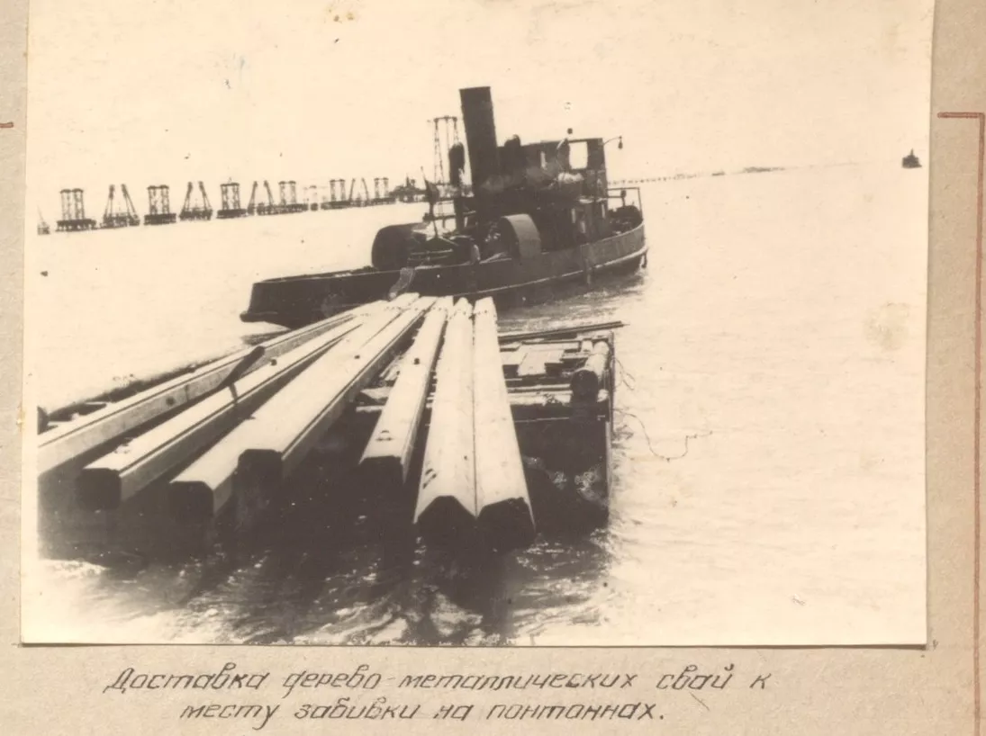 Осенью 1943 года, после того как немецкие войска были изгнаны с Тамани, советское руководство приняло решение о сооружении моста через Керченский пролив. Сваи и балки для строительства было решено использовать немецкие. Ввиду ограниченности времени чертежи разрабатывались и утверждались прямо в процессе строительства. Возведение переправы заняло семь месяцев — в ноябре 1944 года по Керченскому мосту прошел первый поезд.