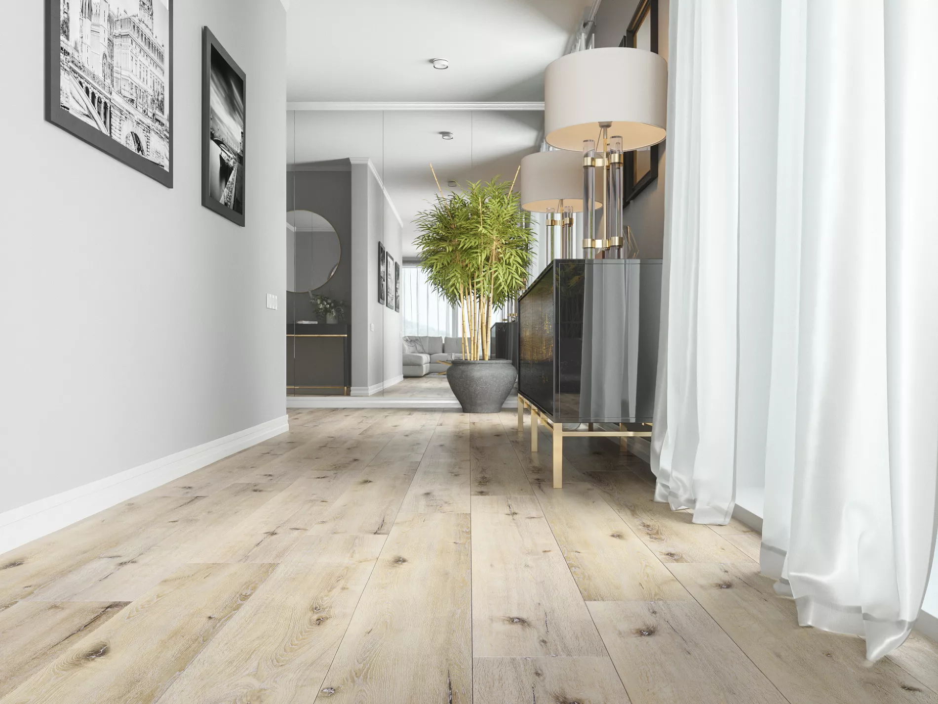 За счет высокопрочного защитного слоя и плотности материала такой ламинат можно использовать в помещениях с высокой нагрузкой на пол. Также поверхность кварцевого ламината предотвращает скольжение — вероятность поскользнуться на нем в разы ниже, чем на том же линолеуме или кафеле.