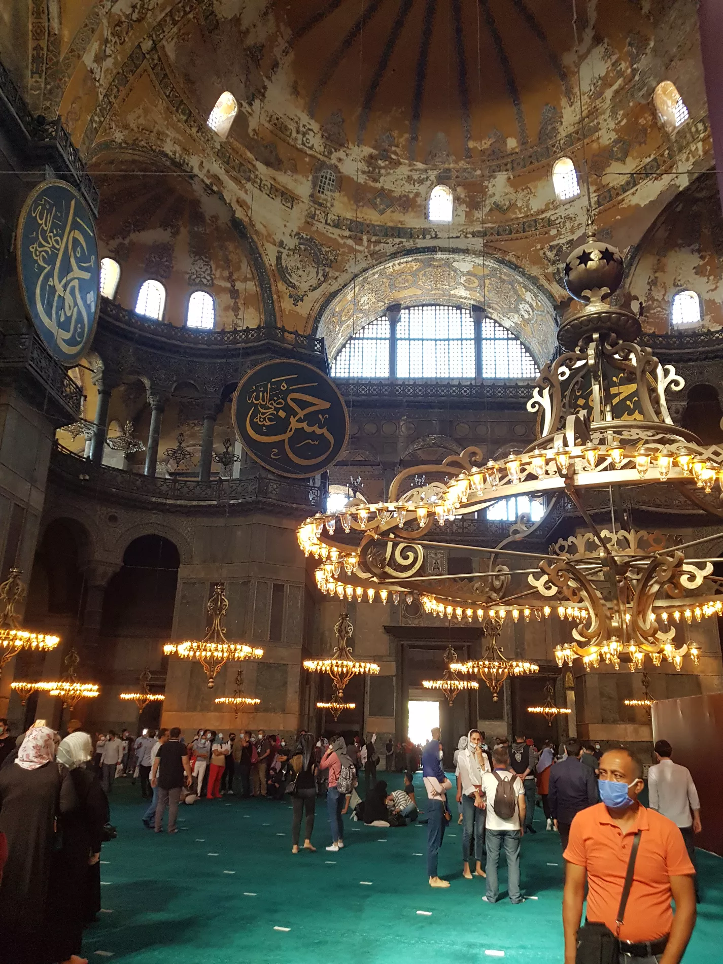 Перед поездкой мы волновались, что большинство достопримечательностей будут закрыты из-за пандемии. Выяснить, так ли это, до покупки билетов не получилось: в интернете мало новостей по теме и много противоречивого из отзывов о последних путешествиях. Но, приехав, мы увидели, что почти все маст-хевы открыты: дворцы Долмабахче и Топкапы, археологический музей, собор Святой Софии, Галатская башня... Не удалось только посмотреть на Голубую мечеть, но она была закрыта на ремонт. К слову, реставрировали в Стамбуле все, что недостаточно ровно стоит: при нас в музеях обновляли стены и покрытия, разбивали новые парки под стенами. Пример того, как можно использовать пандемию для благого дела — улучшать городскую среду, пока на улицах мало людей.